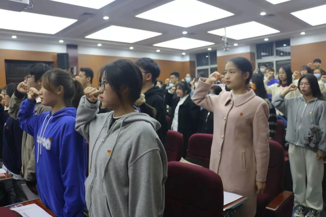 2019级生物科学专业杨润华带领青年团员们重温了入团誓词。