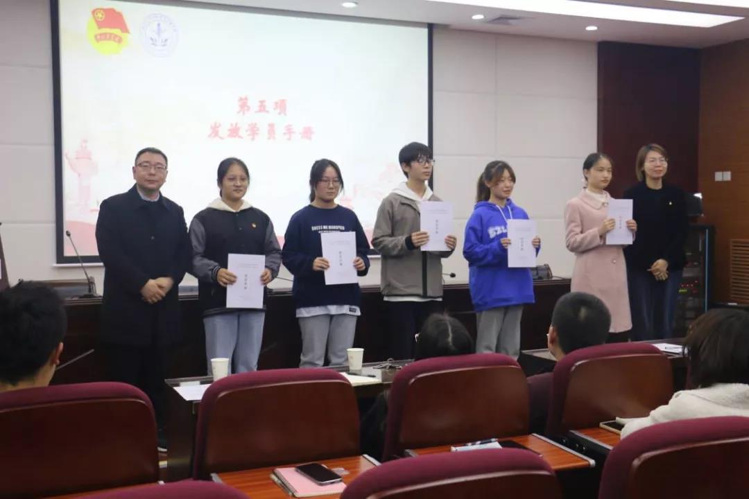 校团委副书记曹智和beat365中文官方网站党支部(直属)副书记杨涛为学员代表发放了学员手册。