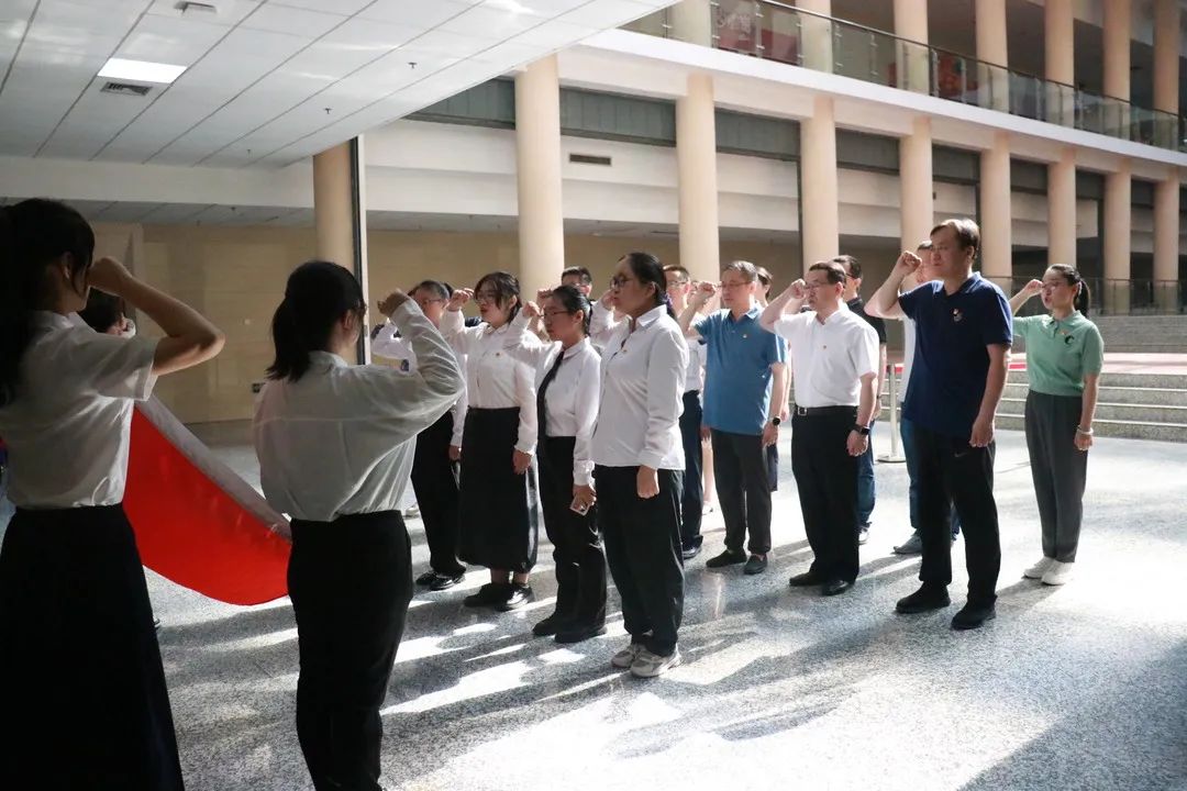 活动伊始,全体师生党员重温入党誓词,在鲜红的党旗下列队整齐、高举右拳,庄严宣誓,以饱满精神接受党性洗礼,用铮铮誓言彰显党员初心。