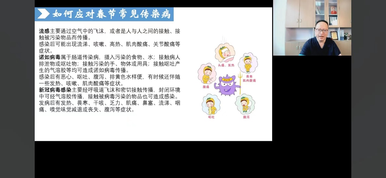 3月23日,beat365中文官方网站孟勇教授为我校幼儿园师生、家长代表近500人带来“幼儿春季传染病及预防”为主题的线上科普讲座。孟教授围绕免疫力、病毒、传染病三个关键点,详细讲解了免疫力的形成机制、春季常见传染病应对策略、诺如病毒的防控方法,以创新、趣味、生动的形式进行医学健康科普知识的推广,将幼儿健康管理落到师生、家长实际行动上,让科普成为家校“定心丸”,成为幼儿健康“保护网”。