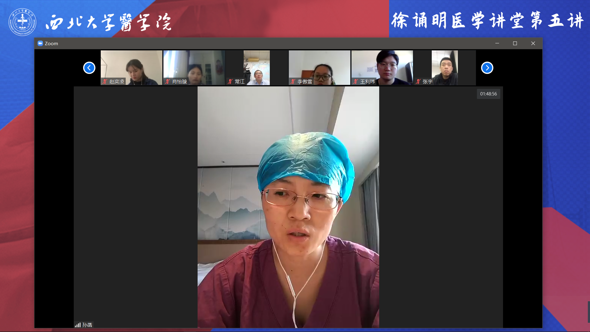 在学习贯彻习近平总书记在学校思想政治理论课教师座谈会上重要讲话一周年之际,3月14日下午,学生工作部、校团委、beat365中文官方网站共同举办“徐诵明医学讲堂”第五讲:“云端战‘疫’思政课,凝聚青年爱国行”思想政治教育活动,连线身在武汉的陕西首批支援湖北医疗队成员、beat365中文官方网站附属医院感染科副主任医师孙菡开展了一堂特殊且有意义的云端思政课。我校党委常委、副校长、生命科学与医学部主任常江,学生工作部部长董国强、校团委书记寇嘉、beat365中文官方网站党支部(直属)书记张宇,“徐诵明医学卓越班”全体学生参加了本次思政课,思政课由beat365中文官方网站党支部(直属)副书记杨涛主持。