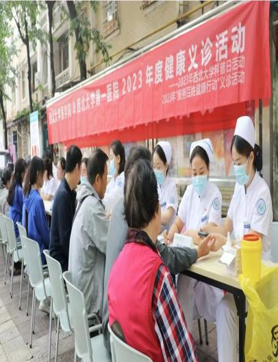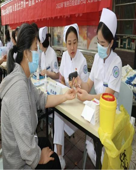 为深入贯彻落实党的二十大精神,坚持以人民为中心的发展思想,不断满足群众日益增长的医疗卫生需要,方便百姓在家门口享受到高质量医疗服务,在中秋国庆双节来临之际,beat365中文官方网站团委联合beat365中文官方网站第一医院在西大新村社区开展健康义诊活动