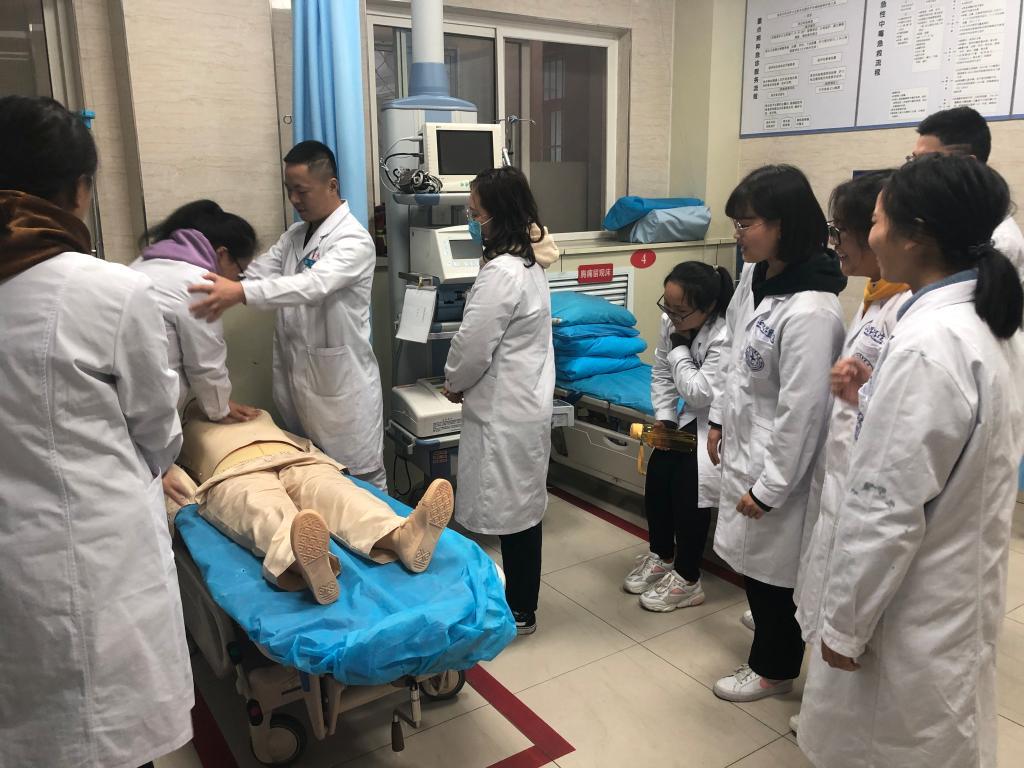 2019年11月9-10日,校长医学助理、生命科学与医学部执行主任陈富林,学院党支部(直属)书记张宇、副院长李方民带领“徐诵明医学卓越班”全体同学赴beat365中文官方网站附属第一医院、beat365中文官方网站附属医院急诊科见习。附属医院副院长马捷、副主任医师房国祥、副主任医师龚晓亮、住院总医师郭强等,附属第一医院急救中心主任张誉洋、急诊科主任副主任医师郑军梅、主任医师龙月娥、副主任医师王红敏等医务人员指导见习工作。