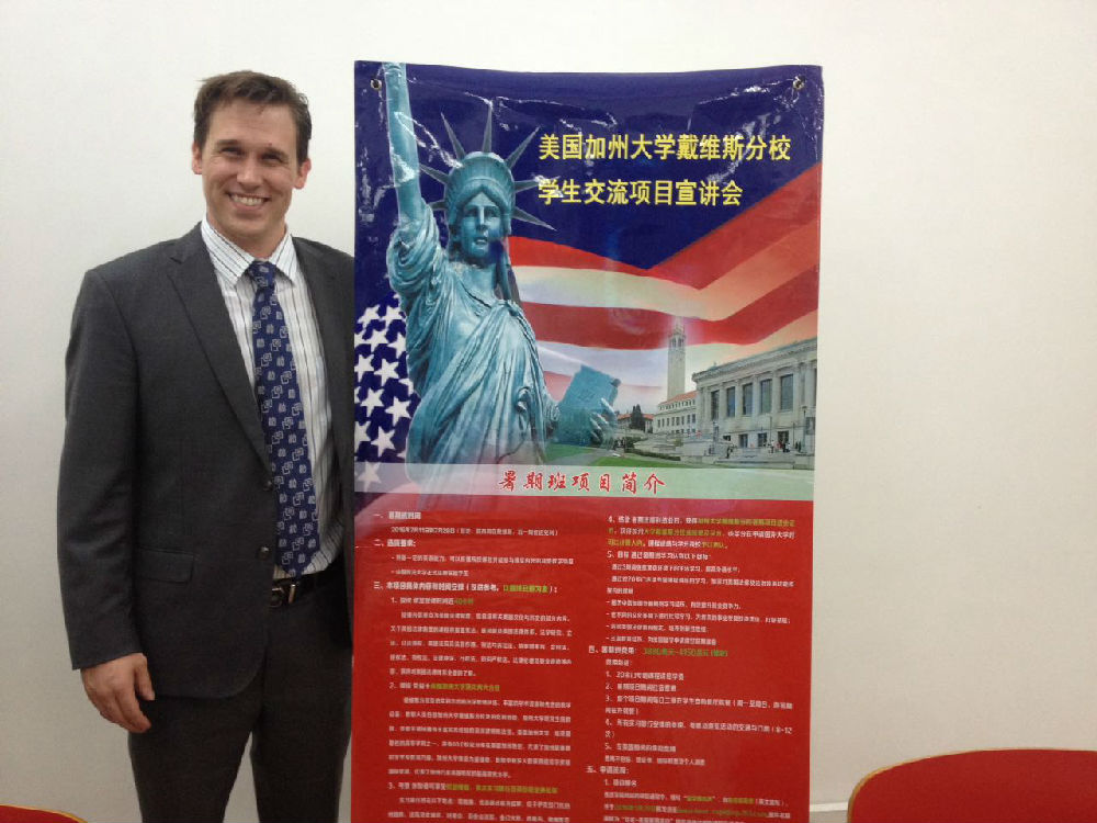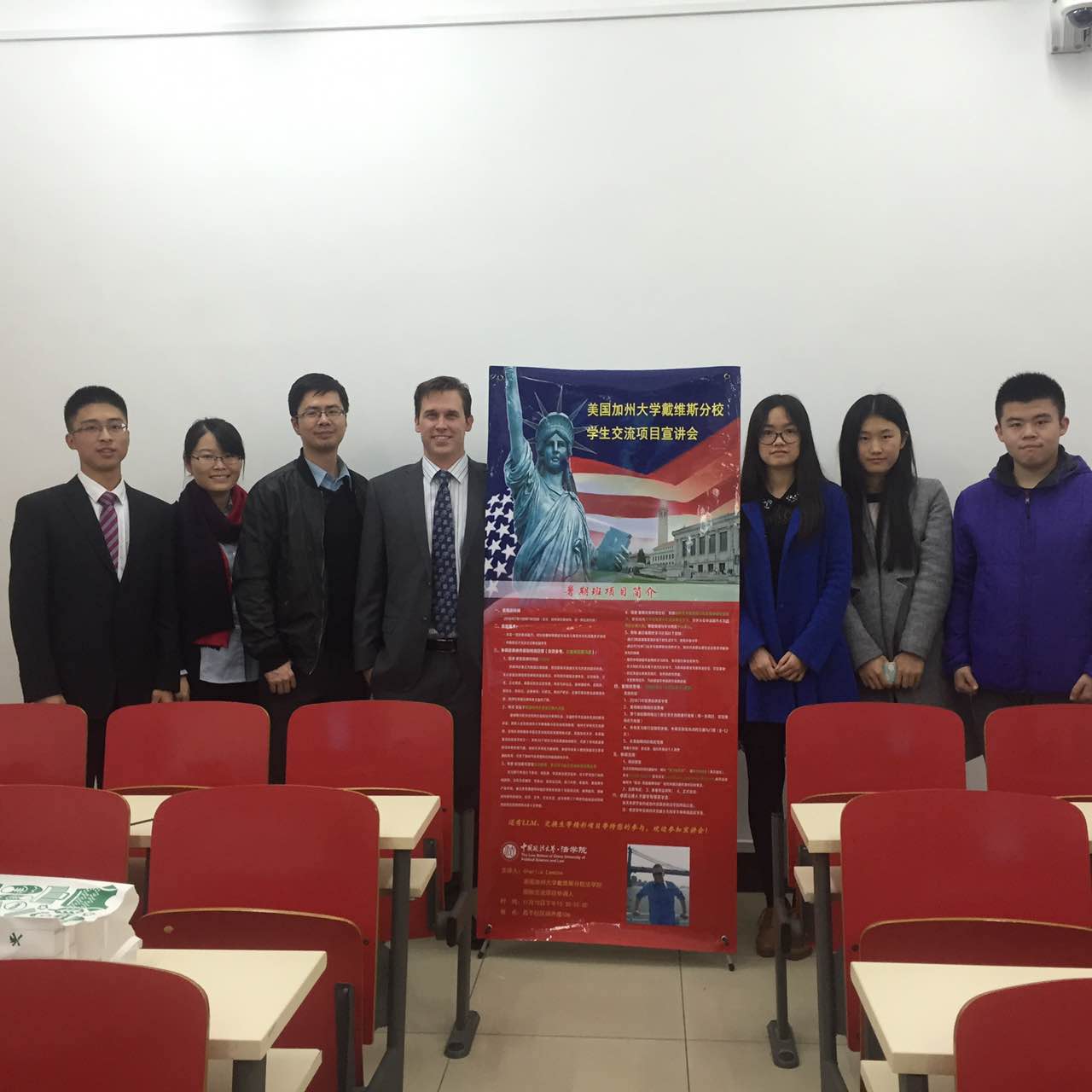 2015年11月10日下午1时30分,2016年度美国加州大学戴维斯分校学生交流项目宣讲会在昌平校区端升楼106成功举办。本次宣讲会的主讲人是美国加州大学戴维斯分校BSport体育官网国际交流项目协调人,Charlie Lemcke。出席本次宣讲会的还有BSport体育官网外事办马允博士、行政法所张力博士和院务办公室主任李仁燕老师。许多对交流项目感兴趣的同学也参加了本次宣讲会。