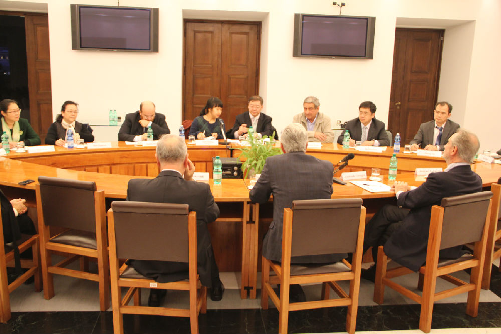 26日下午1,访问团一行在Giampaolo Rossi教授和Danilo Pappano教授陪同下,参观了意大利宪法法院的审判庭、议事厅及主席办公室,并与宪法法院GiancarloCoraggio大法官、MarioRosario Morelli大法官及CarloVisconti秘书长进行了深入学术交流。双方的讨论主要围绕宪法法院对议会立法权的制约、合宪性审查的提起与受理体系、普通法官对此类案件的过滤机制、宪法法院对案件的具体审理方式及表决方法、案件报告人影响其余法官决定的可能性及其控制原理等议题。