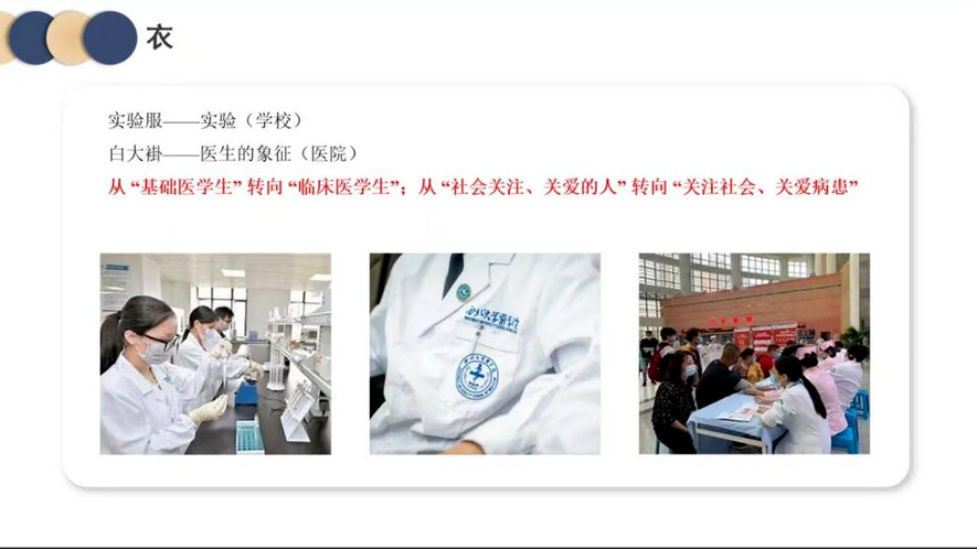 ②“4”—衣食住行。王利玮学长从这四个方面全方位地向同学们介绍了学校生活与医院见习生活的不同之处。他认为,在校的学习相较于临床学习生活而言缺少了实践的部分,因而如何在进入临床学习后,迅速找到从基础向临床转换的方法并且把握平衡又是一个具有挑战性的问题。   ③“3”—医学大家的人生感悟。医学是为了缓解人类病痛而成立的学科,医生的目标即帮助病人重寻健康。这份工作既是伟大的,也是崇高的,同时这也意味着我们需要增强自己的理想信念,努力成为医德高尚、医术精湛、服务人民群众的卓越医生。