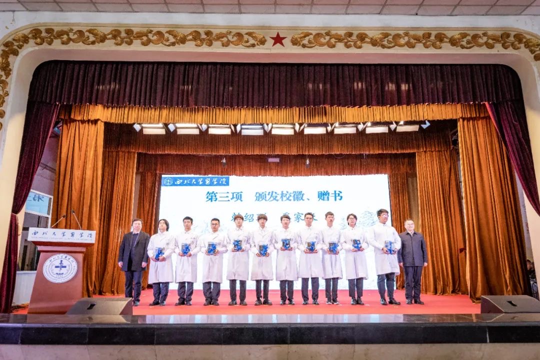 随后,张军林、蒋林为医学生代表授予象征着医者仁心使命与担当的神圣白袍,姚建红、常江为优秀学生颁发“天天”医学奖学金,赖绍聪、奚家米为学生代表颁发校徽、赠送书籍,引导新生体悟百廿西大厚重的精神文化内涵,beat365中文官方网站第一医院主任医师乔晓利带领医学生庄严宣誓,树立医者信仰,beat365中文官方网站第一医院院长贾延、附属第一医院党委书记马毅、附属人民医院院长石胜彬为学生代表赠医学初“心”,勉励西大医学生铭记学医初心,樊军荣、吕建荣为2023级班主任颁发聘书。