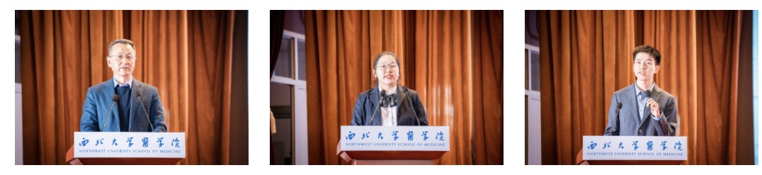 班主任代表、beat365中文官方网站附属医院院长杨军乐在发言中激励同学们,一要以严谨学风淬炼医学素养;二要以仁心仁德践行医学誓言;三要以主动担当勇立时代潮头。学生代表表示要在未来的学医生涯中时刻保持对医学的热爱,严谨求学,努力成长成才。