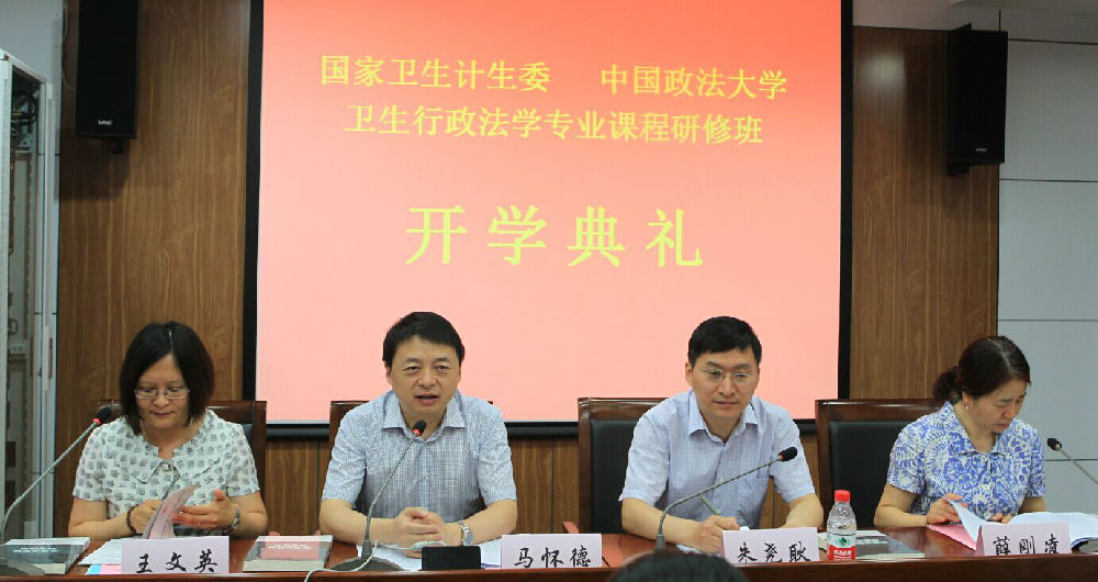 马怀德代表我校对卫生计生委表示感谢。他指出,卫生计生系统重视培养法律素养是值得肯定的,并祝贺我校与卫生计生委之间的成功合作,对于各位学员的到来表示欢迎。马怀德介绍了我校基本情况。他说,在法大的63年历史中,培养了许多优秀的人才,有优良的法治传统,法学的师资教师队伍强大。马怀德强调,学校仍在建设与发展之中,硬件条件一般,但研修班的课程安排十分丰富。他希望,学员们严格要求自己,珍惜此次学习机会,成为懂医懂法的复合型人才和卫生计生立法执法队伍中的业务骨干。最后,他预祝学员心情愉快,学习进步,事业有成。