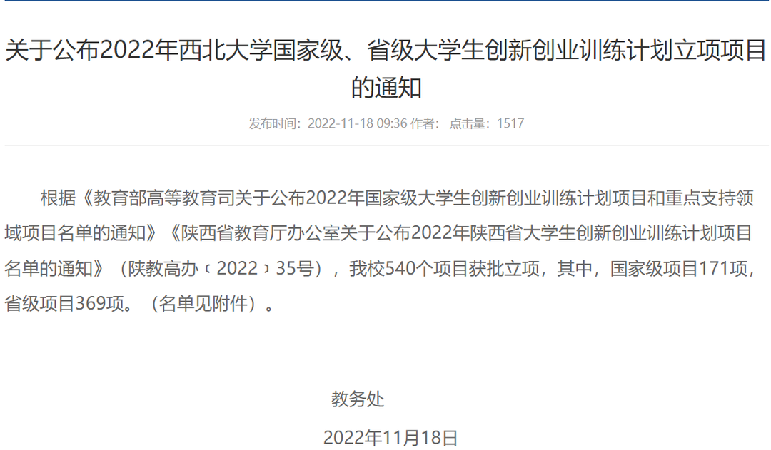 根据beat365中文官方网站《关于公布2022年beat365中文官方网站国家级、省级大学生创新创业训练计划立项项目的通知》,学院共七个项目获批立项。其中,国家级项目5项,省级项目2项。