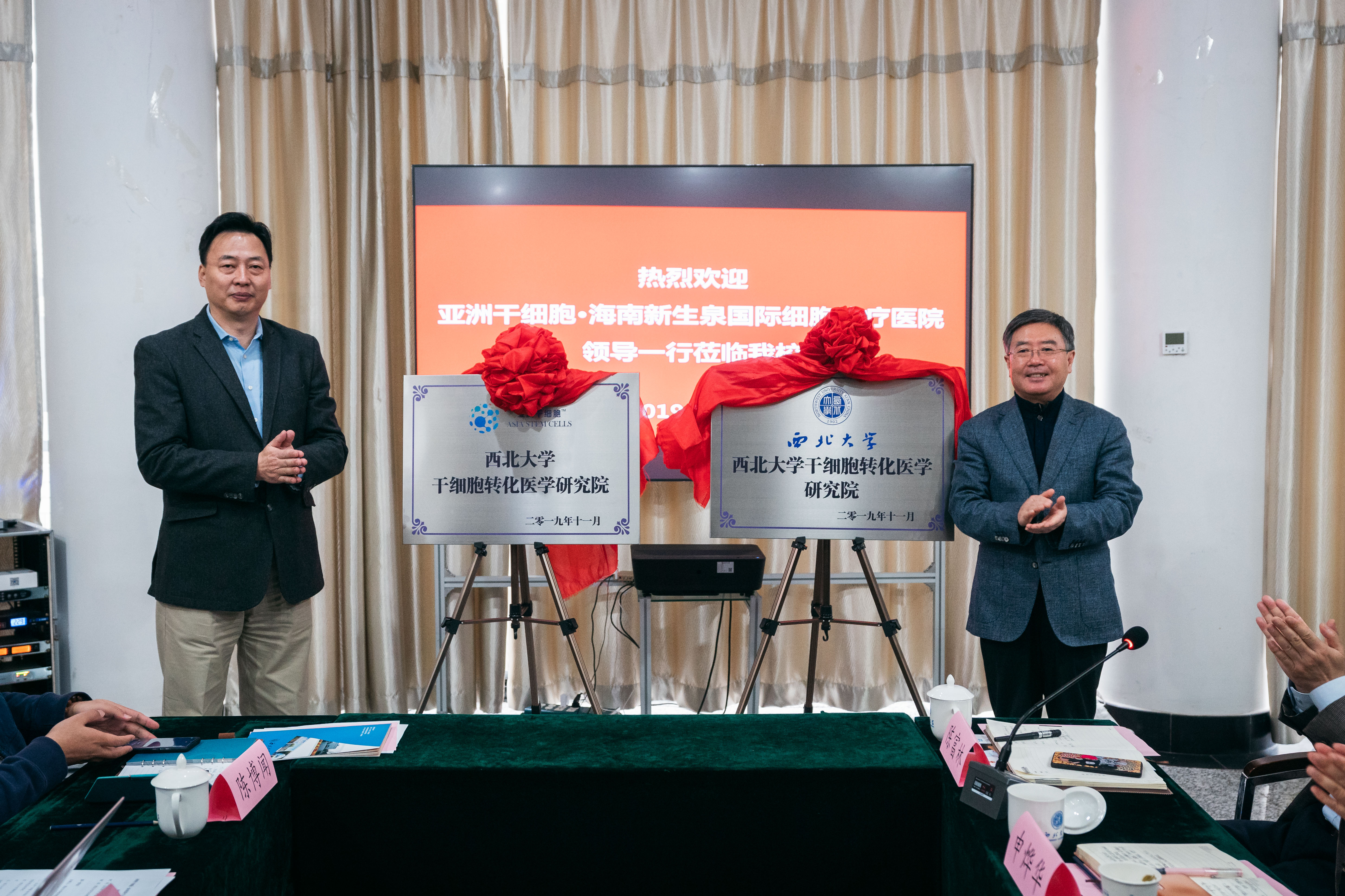 郭立宏与齐念民共同为“beat365中文官方网站干细胞转化医学研究院”揭牌。