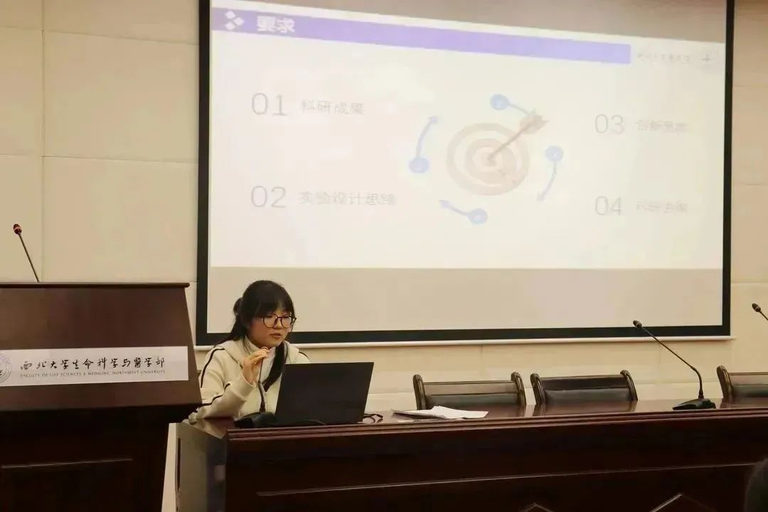 祝艳梨同学重点介绍了获得全国大学生生命科学竞赛一等奖以及参加大学生创新创业训练项目的经历。她告诉同学们,想要做好科研,就必须脚踏实地,要做好吃苦的准备,尊重导师团队中的每一个人,虚心求教才能有所收获。