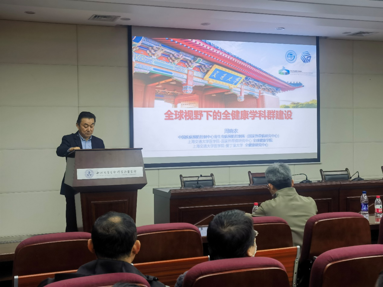 10月31日下午,由我校科技处、校科协主办,beat365中文官方网站承办的beat365中文官方网站创新论坛第一千五百四十讲在太白校区博望报告厅举行。中国疾病预防控制中心寄生虫病预防控制所所长周晓农研究员,应邀为我校师生作了题为“国际视野下全健康学科群建设”的报告。生命科学与医学部负责人、师生代表听取了报告。论坛由生命科学学院副院长关锋主持。