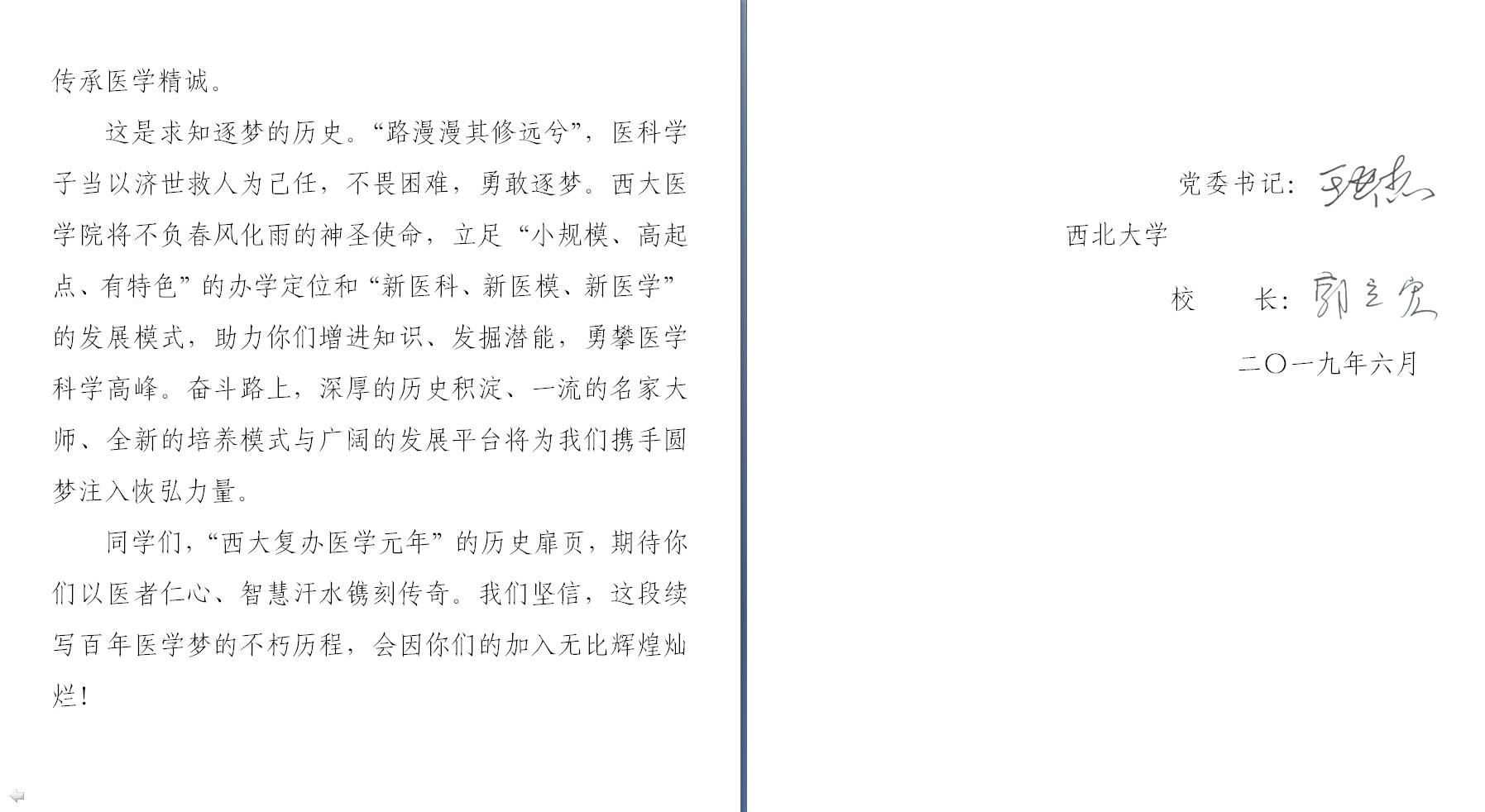 (编者按:2019年6月初,高考结束后第一时间,校党委书记王亚杰与校长郭立宏共同致信即将志愿填报到beat365官网的2019级首届医学专业同学,以下为正文内容)