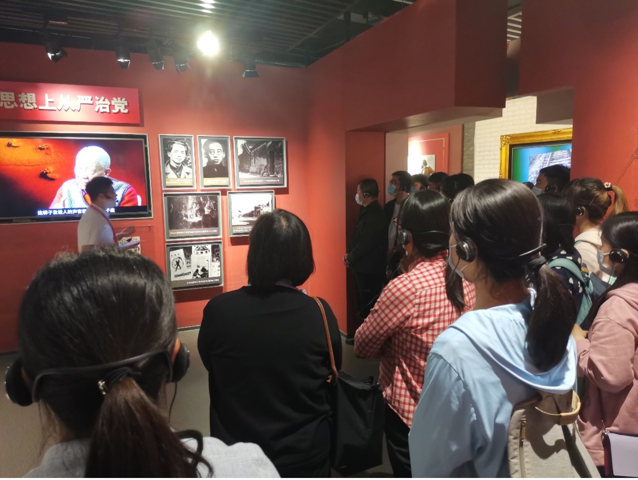 在讲解员的带领下,一行人步入基地院子,被“金色的镰刀斧头,庄严的党旗”雕塑深深吸引,其基座高1921、总高4.9米,象征着中国共产党成立和中华人民共和国成立,一副充满历史厚重感的全面从严治党发展史随之徐徐展开:1848年马克思、恩格斯在比利时布鲁塞尔白天鹅旅馆咖啡厅共同起草《共产党宣言》;李大钊同志就人生、理想和党性和同志们进行“跨时空对话”;草岚子监狱的共产党员通过洋瓷缸子和暖气相互鼓励通信,建立了党组织;江姐带领狱中的同志们绣红旗;焦裕禄同志奋战在兰考县治沙、治水、治碱的第一线;白衣战士丁秀兰在“非典”肆虐横行时因公殉职等,前辈们崇高的理想信念、高尚的道德情操、廉洁务实的工作作风深深震撼着在场的每一位同志。