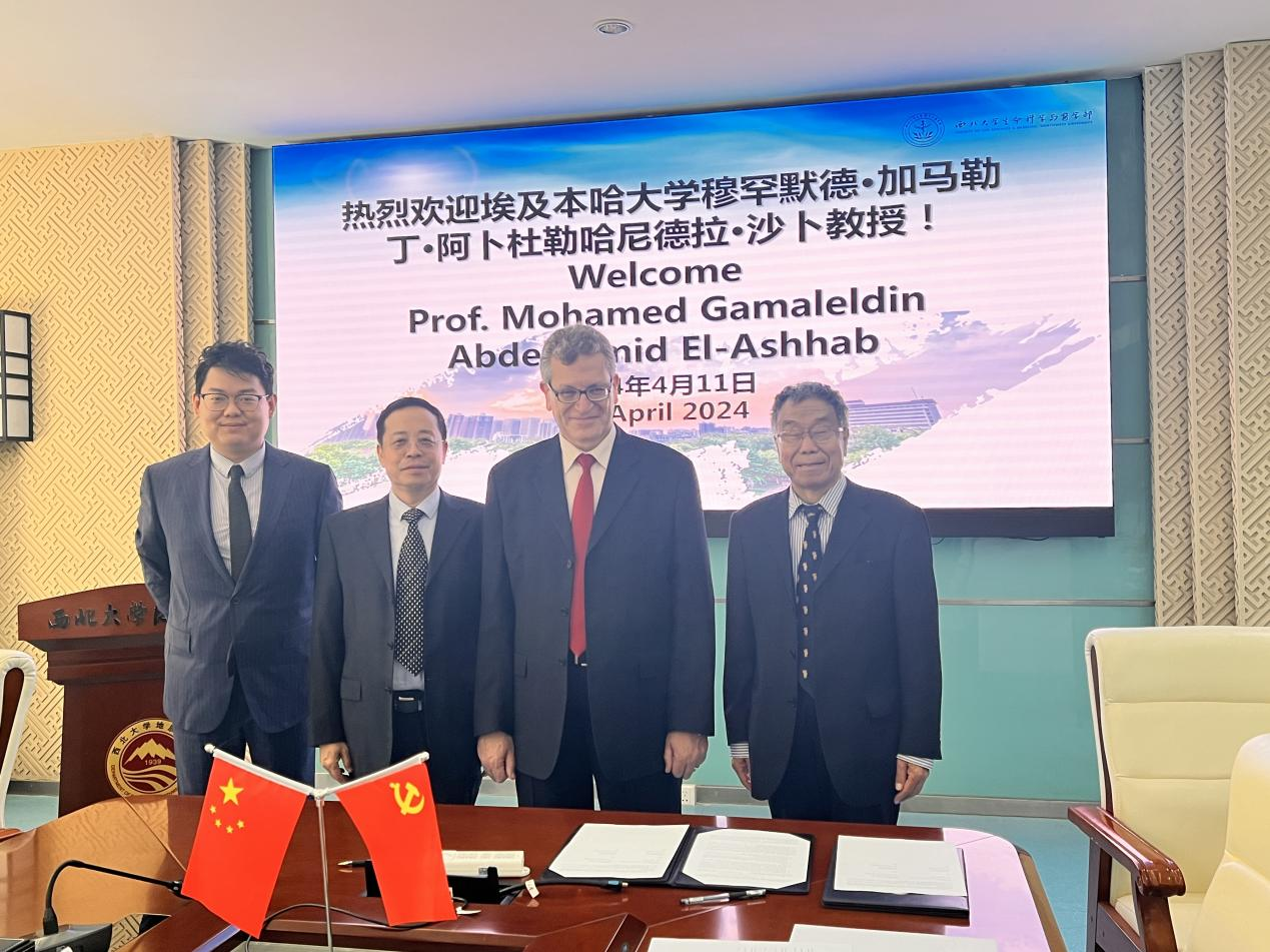 穆罕默德感谢beat365中文官方网站热情招待,他首先介绍了埃及本哈大学两个校区地理位置、产业现状以及未来发展潜力等。他指出,本哈大学一直致力于推动国际化办学和跨学科研究,在多个领域具有广泛的合作空间。他希望,双方能够开展全方位合作,实现资源共享、优势互补,共同探索高等教育发展的新路径。