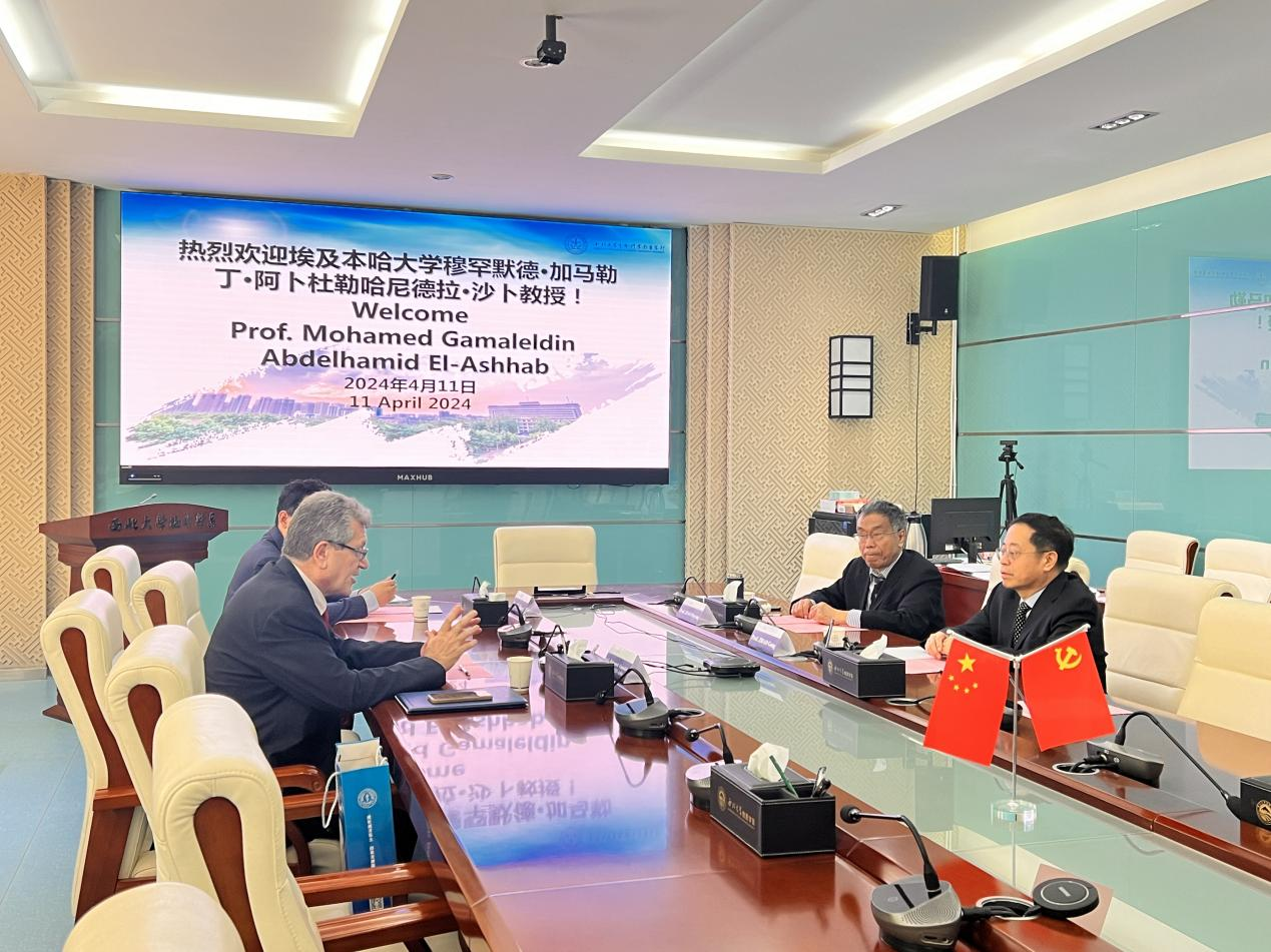 4月11日,埃及本哈大学beat365中文官方网站院长穆罕默德·加马勒丁·阿卜杜勒哈尼德拉·沙卜教授到访beat365官网洽谈合作事宜。beat365官网院长赵钢,陕西省国际医学交流促进会副会长、陕西省人民医院儿童病院名誉院长焦富勇等相关负责人参加座谈。
