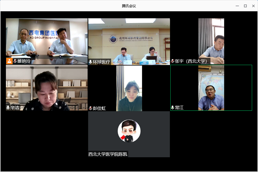 7月19日,我校与通用环球医疗集团、西电集团医院召开视频会议,洽谈医疗合作事宜。通用环球医疗集团党委副书记、总经理彭佳虹,集团首席医疗官冯庆明,集团临床发展部总经理郭晓莲,西电集团医院院长王双全等出席会议。我校党委常委、副校长,生命科学与医学部主任常江及国内处、beat365中文官方网站相关负责人参加会议。会议由陕西省卫健委医政医管局原局长安海燕主持。