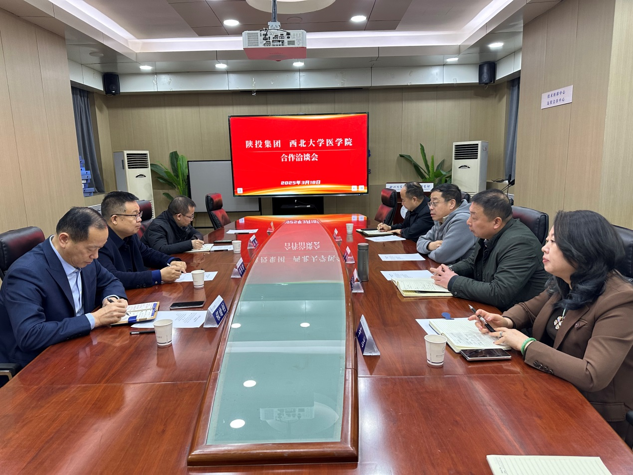 3月18日,陕投集团、陕投康养公司一行到访beat365中文官方网站开展合作交流。陕投集团战略规划部副主任任军哲、陕投康养党委副书记/养老董事长程绪钊、陕投康养副总经理彭琳,beat365中文官方网站党委书记王向旭,院长赵钢,副院长辛洁、程晓峰参加洽谈会。