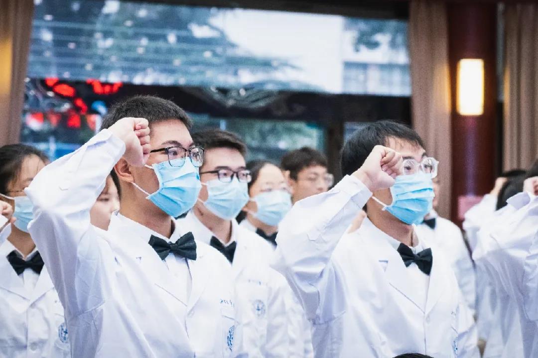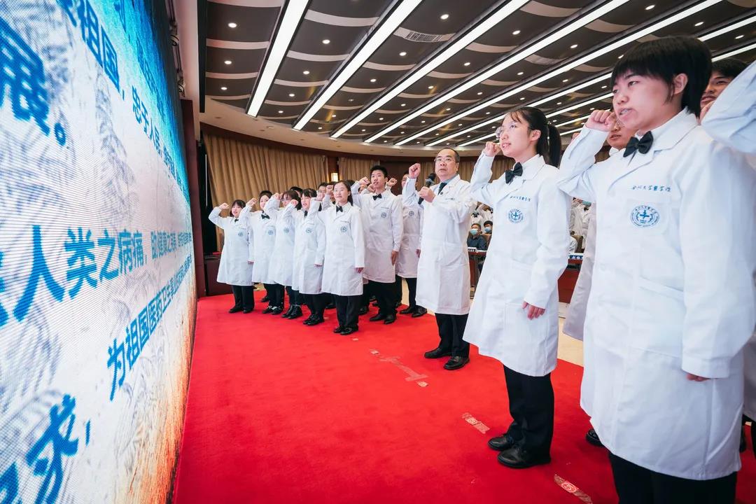 全体医学新生在beat365中文官方网站呼吸与重症医学系系主任吴昌归的带领下进行了庄严的医学生宣誓,将“健康所系,性命相托”铭记心中,全身心维护医学的圣洁与荣誉。