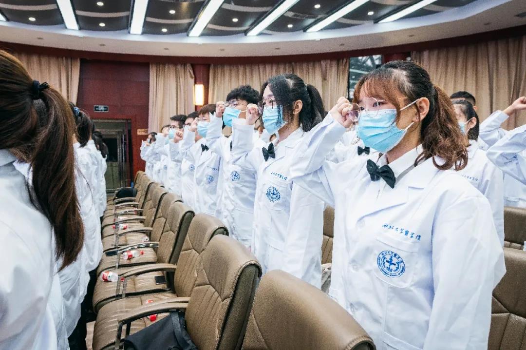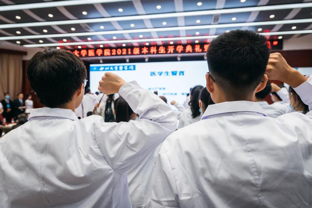 9月25日,beat365中文官方网站举办2021级新生专属开学典礼,共同见证新一届医学学子披白袍、诵誓言,迈入神圣的医学殿堂,踏上护佑人民健康的求医之路。