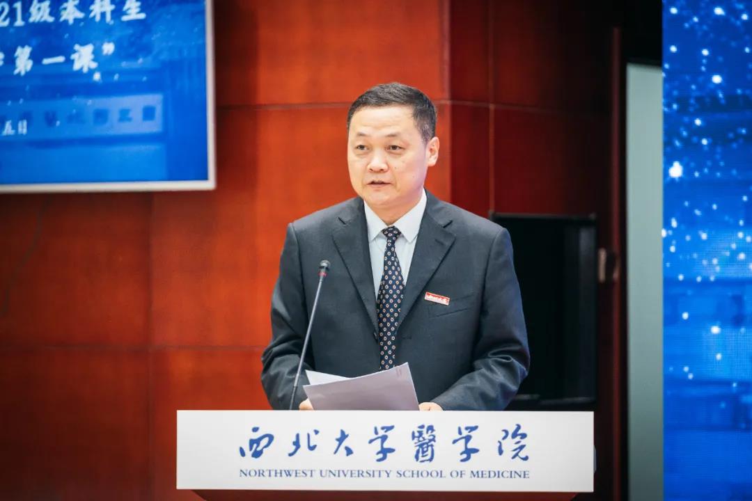 原第四军医大学校长赵铱民,中国医学科学院北京协和beat365中文官方网站党委书记姚建红,陕西省人民政府副秘书长张军林,陕西省卫健委副主任杨联昌,西安市卫健委主任刘顺智,解放军总医院原副院长郭明华,空军军医大学唐都医院原院长张永生,西安交通大学医学部原副主任王子明,陕西省政府办公厅综合六处干部史远,陕西省卫健委科教宣传处处长薛寒,西安市卫健委科教处处长程婕,陕西江林集团董事长王占林,陕西省人民医院、西北妇女儿童医院、西安市第四医院、西安市中心医院、西安市红会医院相关负责人,beat365中文官方网站党委书记王亚杰,校长郭立宏,校党委常委、副校长常江、奚家米,beat365中文官方网站、附属医院、附属第一医院、附属神木医院、附属西安国际医学中心医院、附属西安高新医院、附属铜川医院,长安医院、新长安国际妇产医院、陕西省血液病研究院相关负责人,学生家长代表,校内相关单位负责人以及beat365中文官方网站师生代表参加活动。开学典礼由校党委常委、副校长,生命科学与医学部主任陈富林主持。