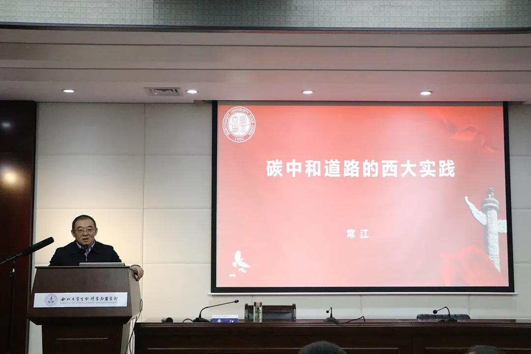 为贯彻落实中省“双碳”工作相关意见精神,展现beat365中文官方网站推动构建人类命运共同体的责任担当,引导师生聚焦“四个面向”,夯实理想信念,提升服务国家战略意识,11月9日下午,校党委常委、副校长,学校思想政治理论课兼职教师常江研究员为生命科学与医学部师生讲授了题为“碳中和道路的西大实践”专题思政课,此次思政课由张宇书记主持,学部班子成员、师生代表共同听讲。