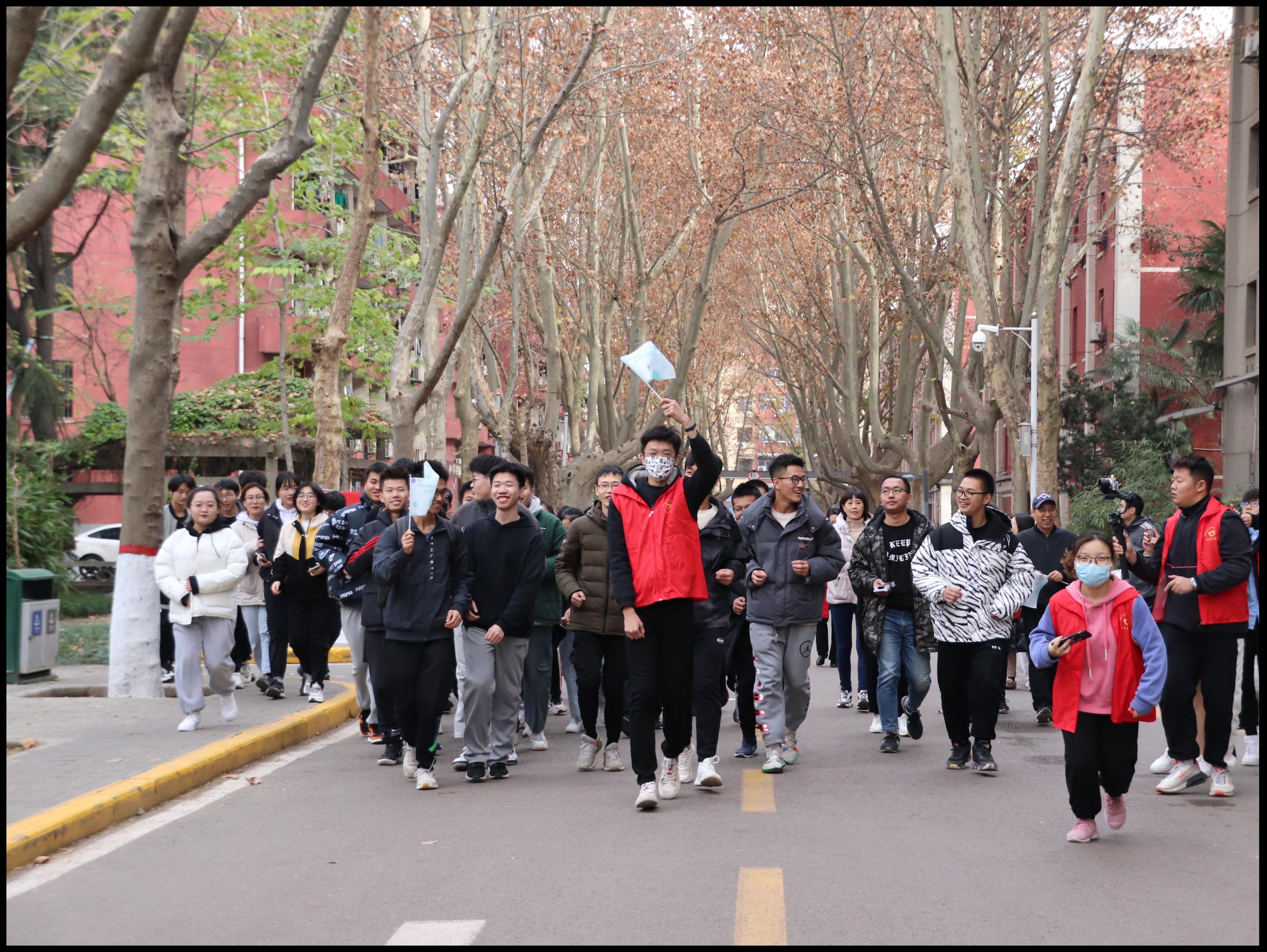 随着师生拔河赛的结束,老师与同学们的热情都得到了充分的调动。随后,师生稍作休息,整装待发,以生命科学与医学部楼前为起跑点,前往科研楼,从科研楼1层攀爬至12层,鼓励广大师生多以走楼梯的形式代替乘坐电梯。12层楼高,上下12千卡路里的消耗,锻炼了师生的身体,减少了由电梯产生的碳排放,从生活的一点一滴中践行“绿色低碳校园建设”的理念 。
