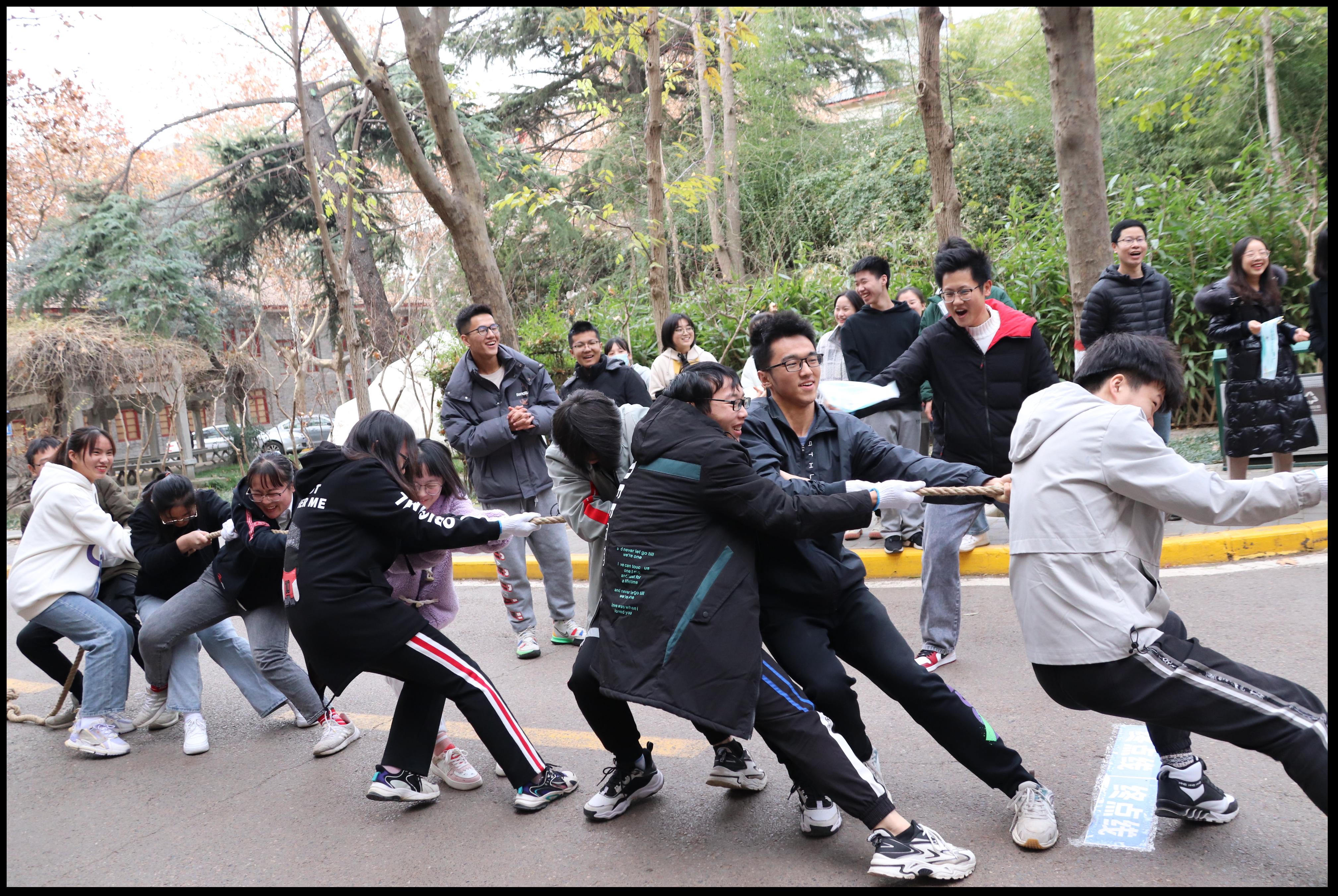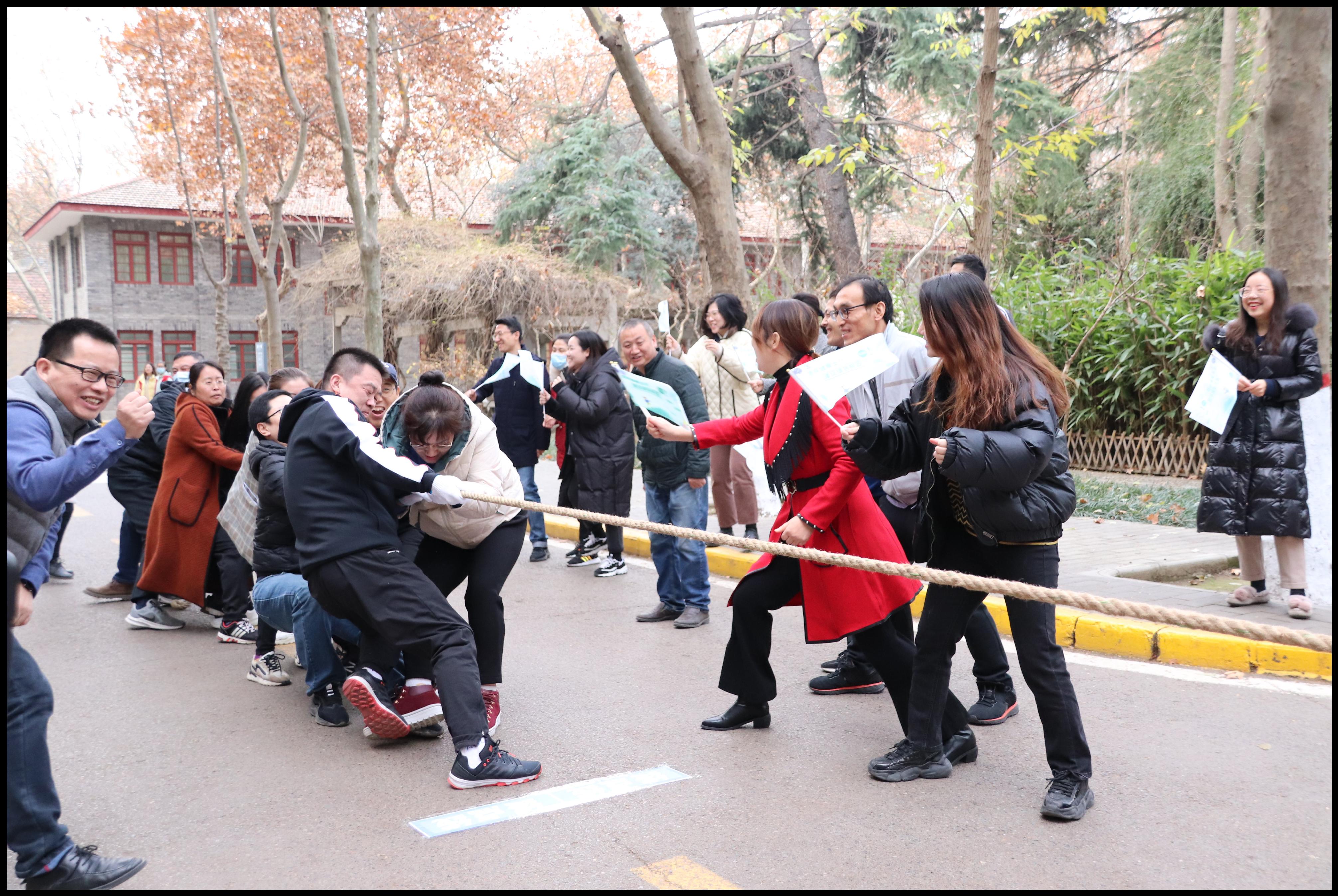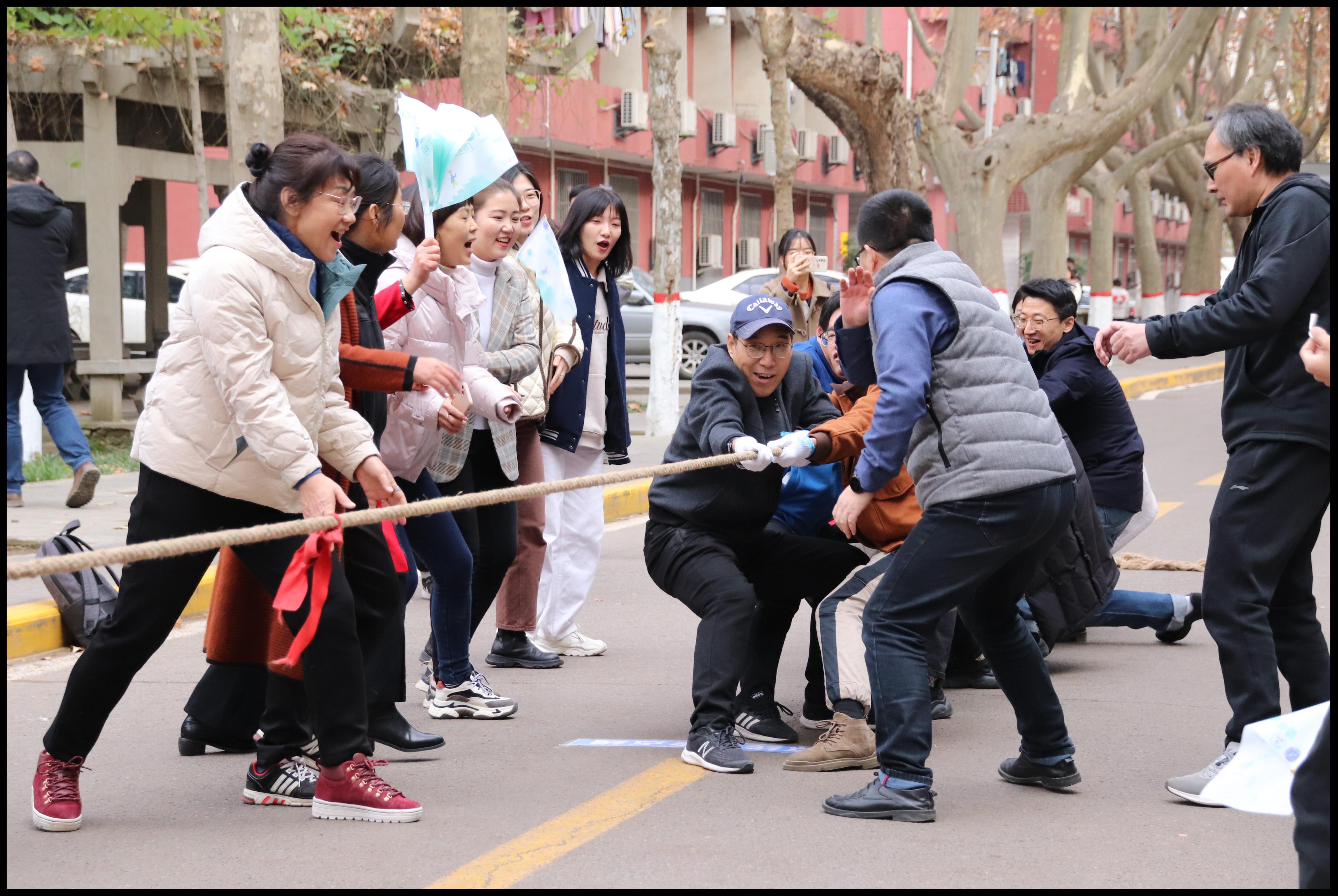 在裁判的带领下,参赛师生做好了准备动作,队伍整装待命,摩拳擦掌,随着裁判的一声哨响,比赛拉开战幕,老师与同学们都众志成城,团结一心,奋力使劲,不甘示弱,以团结友爱、顽强拼搏的精神投入比赛。场边的老师和同学们组成啦啦队,呐喊、加油、助威、欢呼,声音震耳欲聋,此起彼伏。