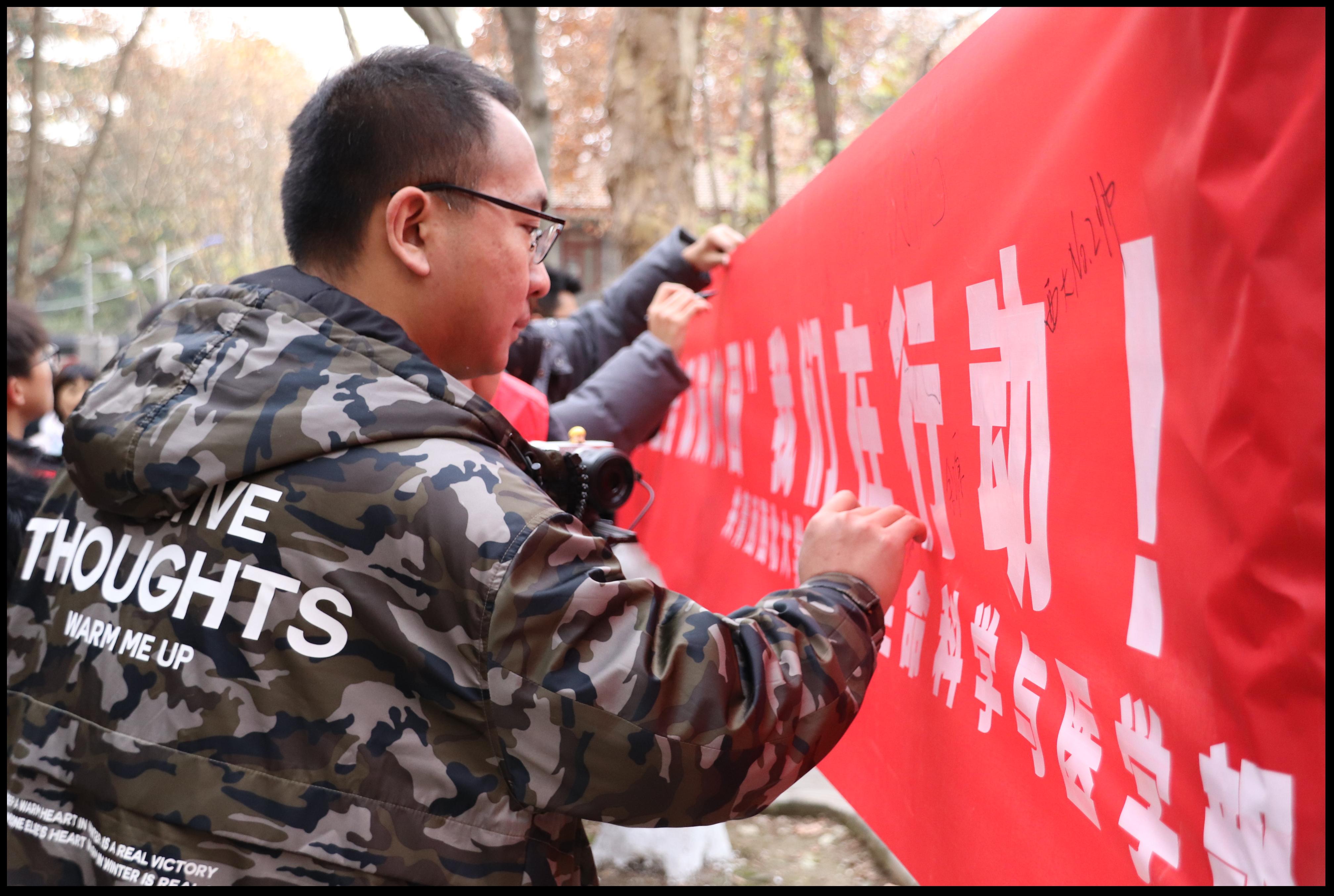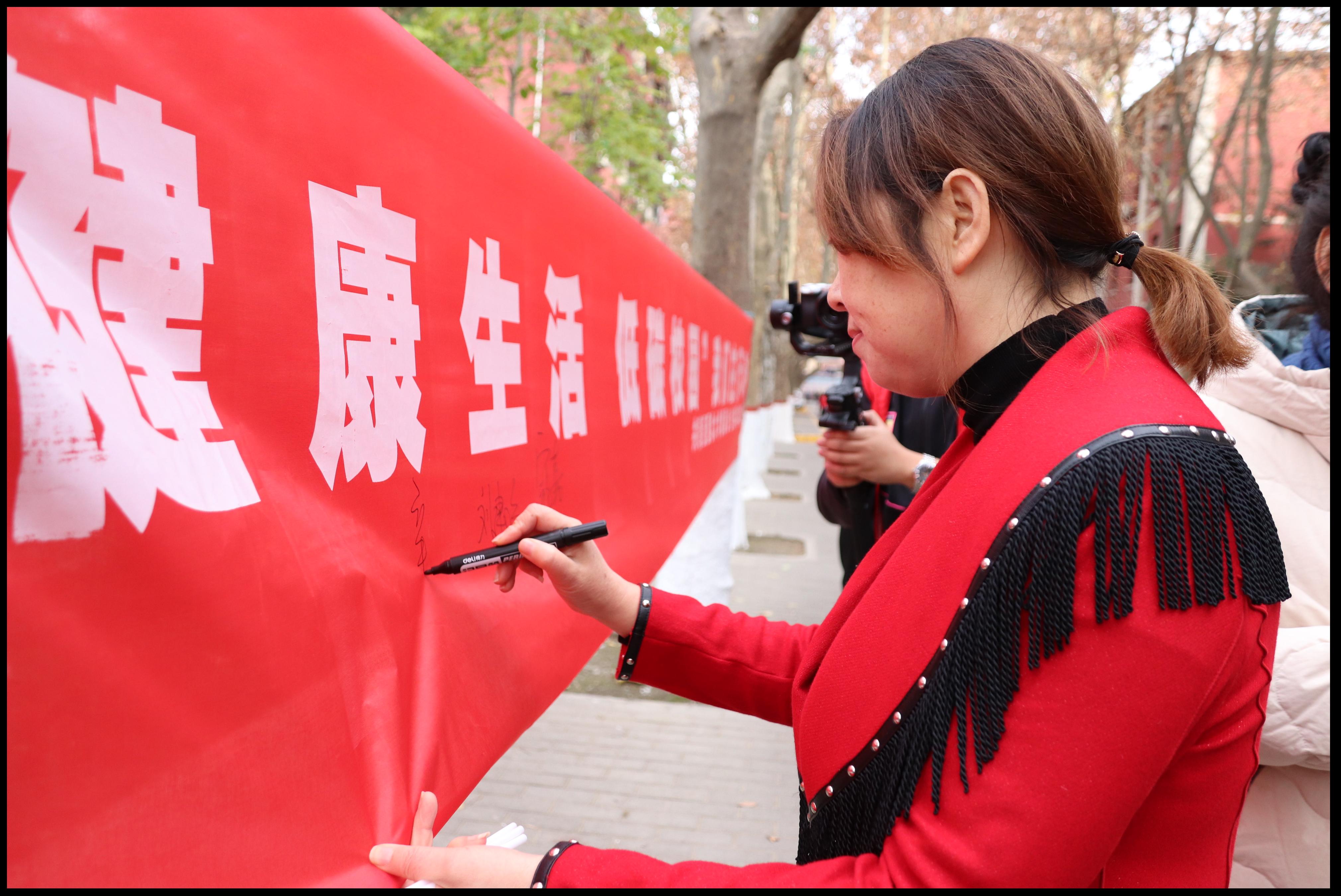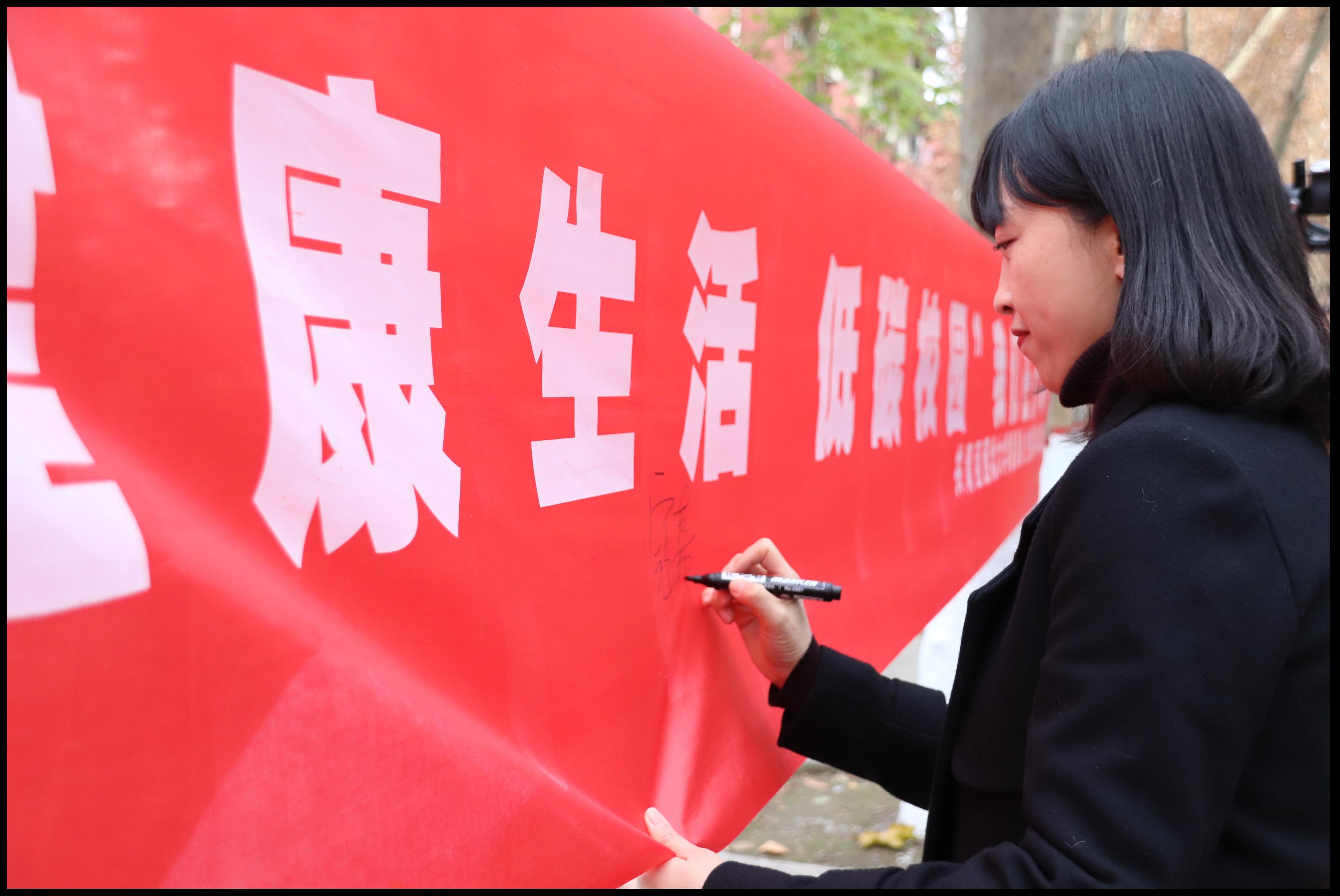 寇嘉老师首先介绍了活动的主题与意义,随后宣布活动正式开始,全体师生在“‘健康生活,低碳校园’我们在行动”横幅上庄严地签下自己的姓名。