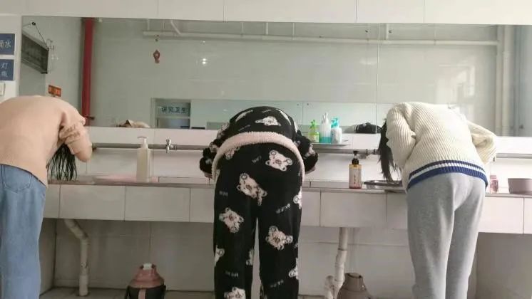 (同学们晨起洗头)