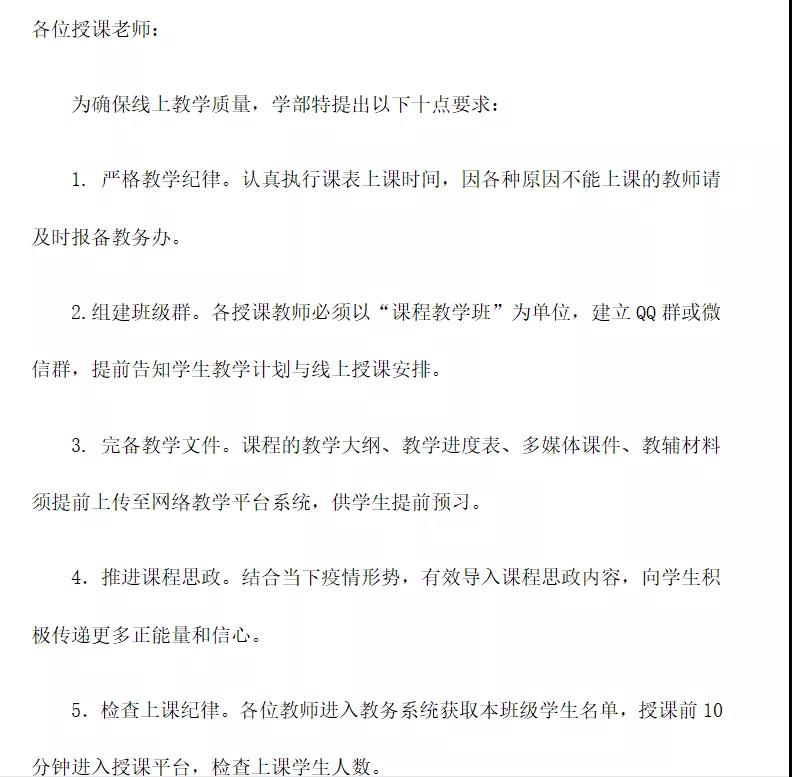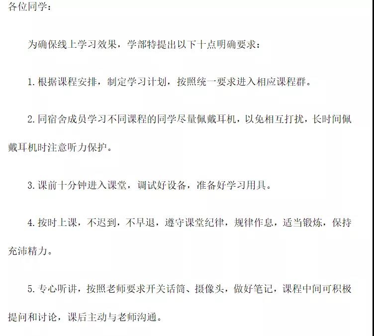 为确保特殊时期线上教学质量和学生学习效果,学部特向教师和学生分别提出“网课十条要求”。