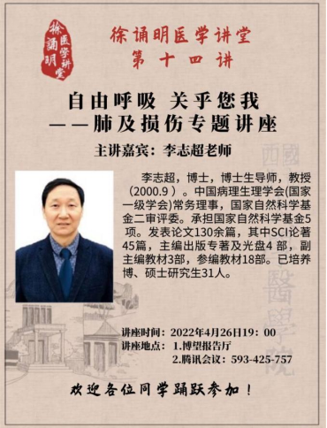 徐诵明医学讲堂 | 李志超教授:自由呼吸关乎您我——肺及损伤专题讲座