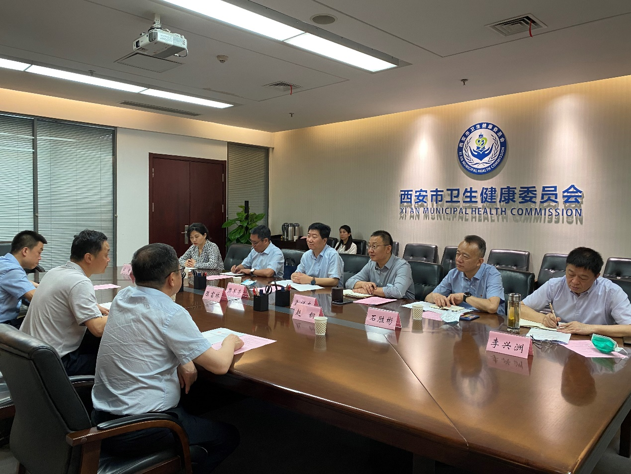 5月27日,校党委常委、副校长、生命科学与医学部主任陈富林一行赴西安市卫生健康委,就医学教育建设工作进行座谈交流。西安市卫生健康委党委书记樊军荣、市保健局局长孟祥东,beat365中文官方网站院长赵钢、书记张宇及双方相关部门、附属医院负责人参加座谈。