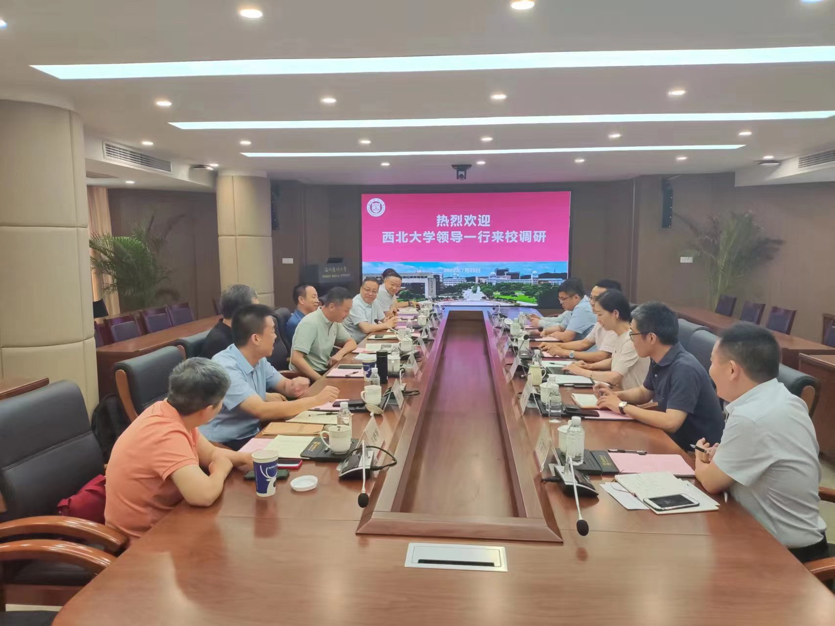 7月26日,校党委常委、副校长,生命科学与医学部主任陈富林带队赴温州医科大学参观访问。温州医科大学校长李校堃院士,校党委委员、副校长曹建明,温州医科大学相关单位负责人参加座谈。我校beat365中文官方网站、附属第一医院和西安市第九医院等单位负责人陪同访问。