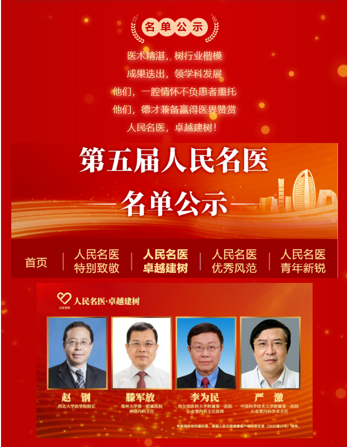 人民名医盛典作为业界颇具影响力的“医生学术活动”,已成功举办四届,活动以“权威、客观、公正”为原则,以“推举医者榜样,引领尊医舆论,促进人民健康”为主题,旨在通过表彰先进个人,形成促进我国名医成长的政策、机制、舆论、学术、社会环境,激发医生做名医的内生动力与职业尊崇感,为健康中国助力,得到医疗界的广泛支持和积极响应。盛典发布的系列榜单已成为业内备受瞩目,社会倍加关注的一份有影响力的榜单。