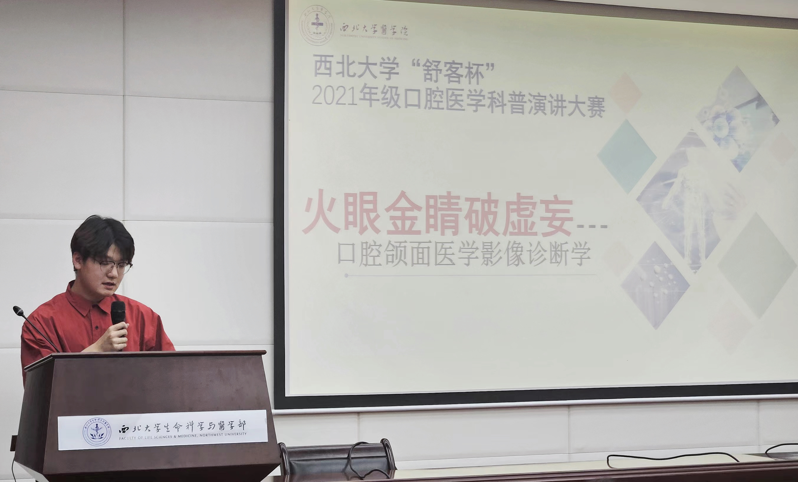 为提升口腔健康科普宣传能力,激发口腔医学学子学习兴趣,在实际行动中践行“医人报国,精诚济世”的院训精神,6月28日,beat365中文官方网站成功举办首届“舒客杯”口腔医学科普演讲大赛。学院院长赵钢、口腔医学系主任冯雪、教授李刚、口腔医学教学中心主任侯晓冲、beat365中文官方网站出版社编辑王银存以及口腔医学系教师黄睿、张晓、董培媛担任大赛评委,2021级口腔医学专业29名同学参与本次大赛。