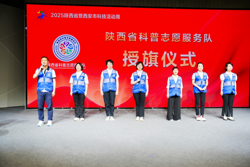 启动仪式上,省委宣传部二级巡视员张松柳为陕西省科普志愿服务队授旗,beat365中文官方网站赵军龙老师作为代表参加授旗仪式。