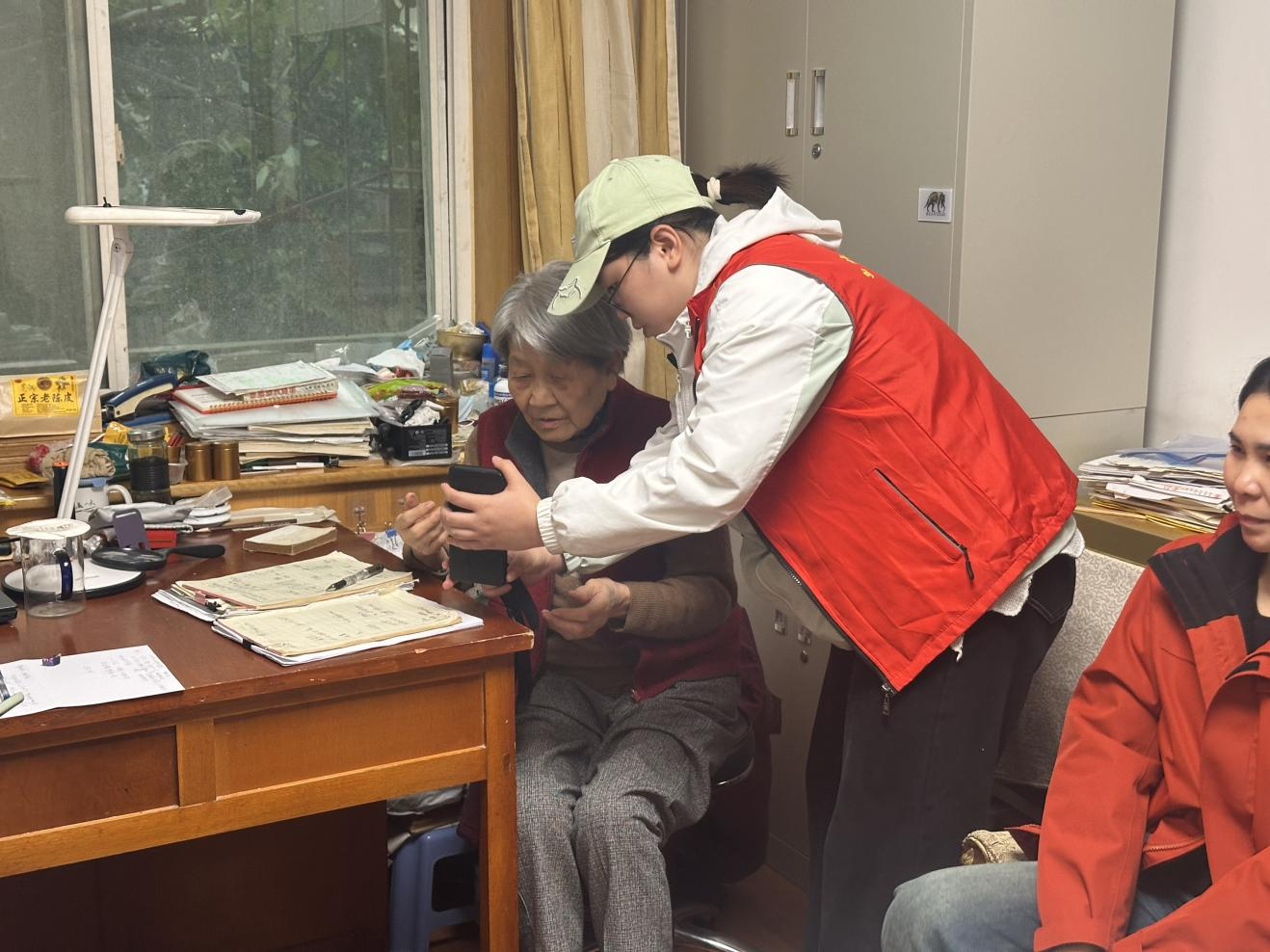 在服务活动中,同学们还帮助老人使用手机完成养老待遇领取认证。随着熟悉度加深,氛围越来越好,