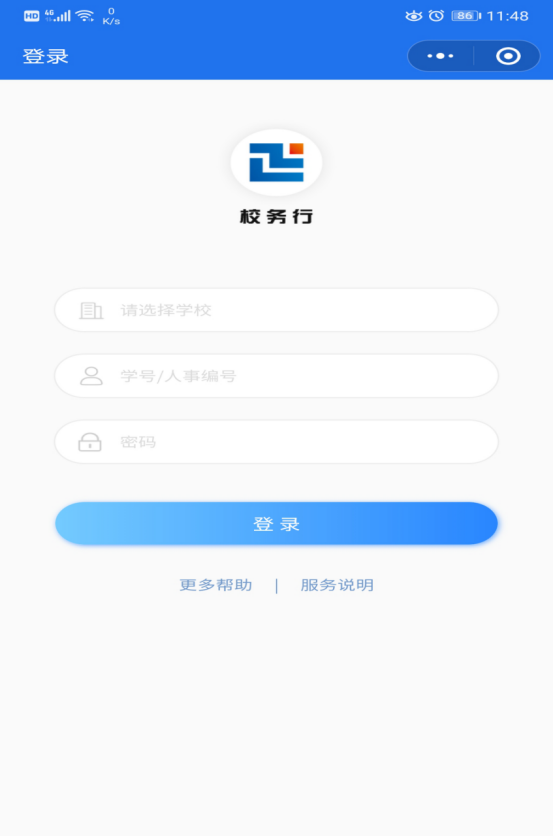 1. 职工个人进入手机微信后下拉菜单进入微信小程序,搜索“校务行”,点击进入校务行小程序。