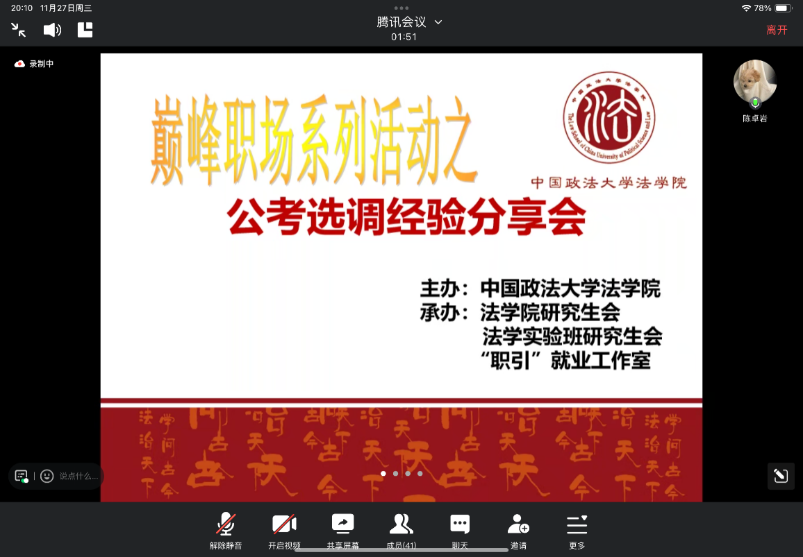 现就职于北京市某中级人民法院的BSport体育官网实验班2022级硕士王龄浠分享了京考的备考经验。首先,她从考前如何冲刺的方面开始讲解,建议大家少刷新题、巩固错题,并着手背诵一些申论素材。其次,她介绍了应对政审和面试的个人经验,从准备方式、时间安排等方面分别展开讲述。接着,她还为大家简单分享了法院的工作节奏与选岗心得,鼓励大家认真备考,取得理想的成绩。