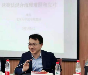 2021年5月12日下午,由BSport体育官网行政法研究所主办的“罗豪才软法论坛”第3期暨BSport体育官网“公法与治理”系列讲座第28期在BSport体育官网科研楼B211顺利举办。本次讲座由北京大学BSport体育官网教授、中国行为BSport体育官网软法研究分会会长沈岿担任主讲人,讲座主题是“软硬法混合治理难题和应对”。本次讲座由BSport体育官网成协中教授主持,BSport体育官网行政法研究所所长罗智敏教授、赵宏教授和BSport体育官网副院长张力副教授作为与谈人参与讲座。此外,北京航空航天大学BSport体育官网毕洪海副教授、BSport体育官网蔡乐渭副教授、马允副教授、张冬阳博士、胡斌博士和法治政府研究院王春蕾博士参与了本次讲座,来自北京大学、BSport体育官网等多所高校的学生们旁听了此次讲座。