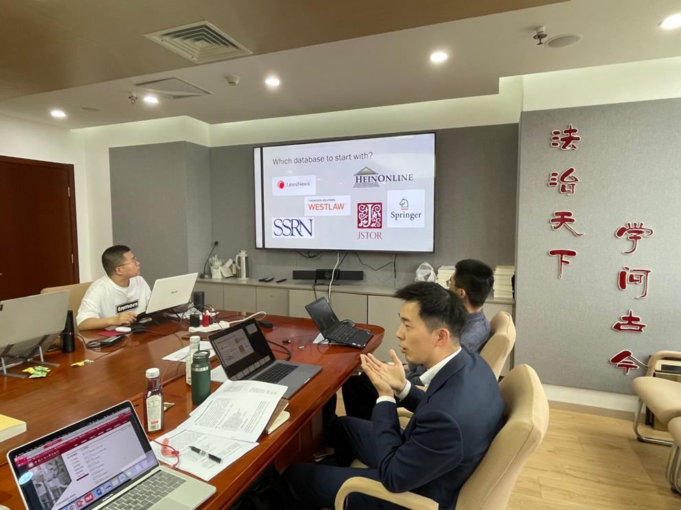 庆启宸博士首先就如何进行域外文献检索进行了引导发言。庆启宸老师先介绍了当前主要的域外文献检索网站,最常用的域外法条和案例等一手文献的检索网站为LexisNexis和Westlaw,前者适宜检索欧盟法,后者则更适宜检索美国法,HeinOnline、Springer、SSRN和JUSTOR则为检索电子书籍、期刊等二手文献的常用网站。庆老师继而向同学们具体演示了如何使用特殊连接和扩展词更为便捷地在Westlaw中搜寻具体的案例与法条,并提示需注意案例中是否存在黄标或红标等表示存在不同判决或者当前判决已被推翻的特殊标识。最后,庆老师向大家讲解了如何快速浏览域外判决,提示大家关注判决中的争议焦点(issue)部分。