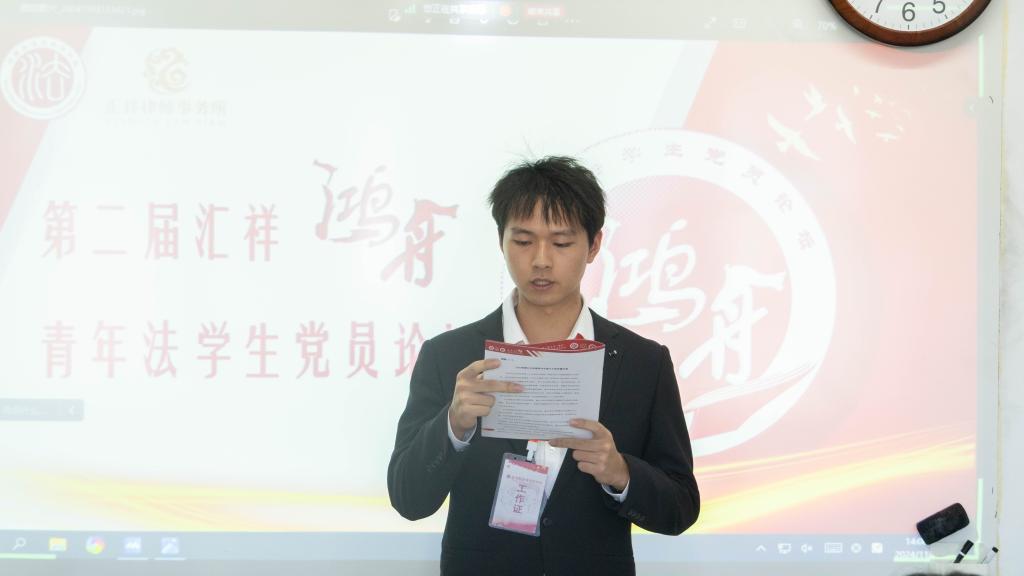 第二论题的讨论由BSport体育官网党委宣传中心部长王翌阳致题解,随后各院校青年法学生党员代表依次发言。