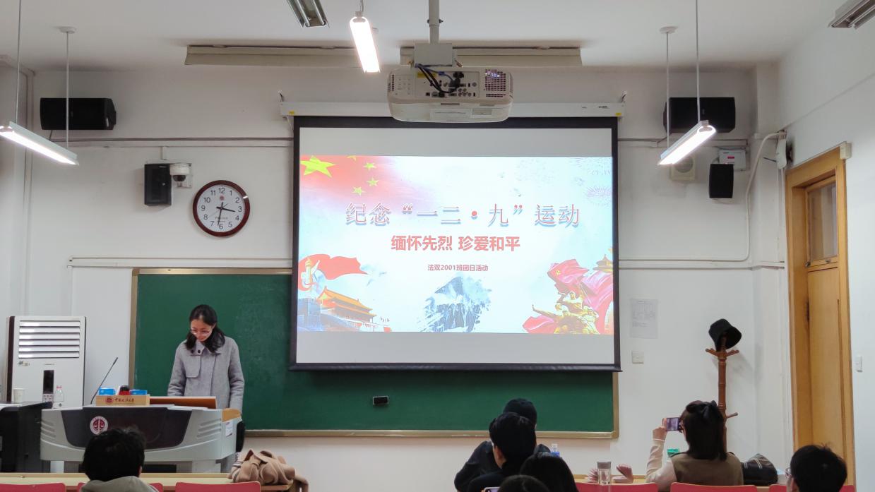 团日活动在致公楼202室举行,活动内容形式丰富,主要流程包括了“一二·九”历史事件现场讲解、“一二·九”知识竞答、观看“一二·九”开展过程和历史意义的相关视频,并在观看后讨论分享心得体会等。活动中,团支书杨自然同学以多媒体的形式为同学们详细介绍了发生在1935年12月9日的“一二·九”爱国救亡运动,使同学们对“一二·九”学生运动的历史背景、发展经过、重大意义及“一二·九”精神有所了解。本次主题团日活动意在帮助同学们更好地铭记历史,传承“一二·九”精神,弘扬爱国主义精神,不断砥砺前行。
