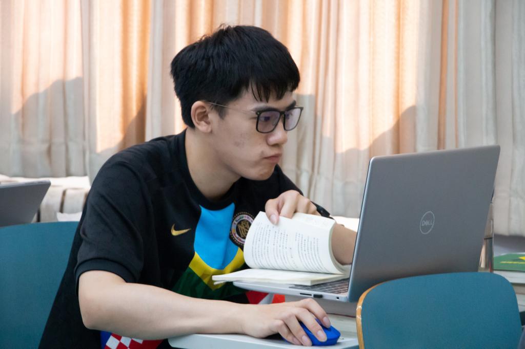 比赛开始前,由主持人宣读考场纪律和比赛的注意事项。九点整,考试正式开始。选手们认真审题,争分夺秒,时而流畅行文,时而落笔沉思,各骋所长。