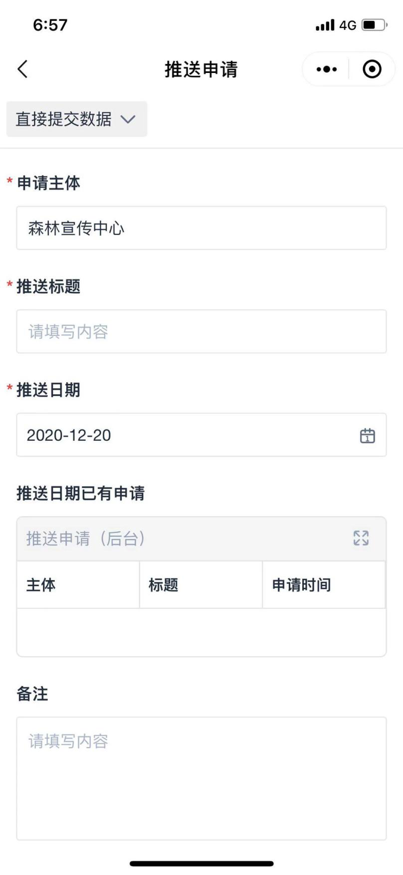 如果是申请推送工作,请点击“推送申请”,填写表单并提交申请。