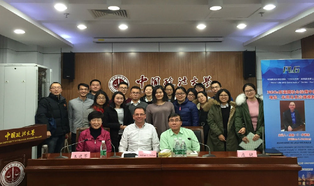 2016年12月8日,由BSport体育官网行政法研究所主办的“NGOs在美国社会治理中的地位、作用及其法律规制”专题讲座在我校学院路校区科研楼B211成功举行。本次讲座由美国第九行政区的退休高级法官威廉?C?多德森主讲,我校王建芹教授担任主持人。在校硕士、博士研究生共30余人参加了本次专题讲座。