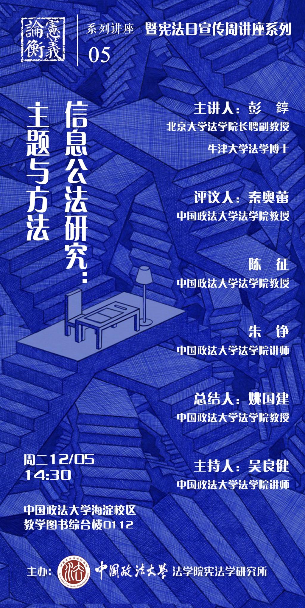 主要内容:将综合介绍主讲人近年来在个人信息保护法、社会信用法治体系、通信权等领域的整体研究