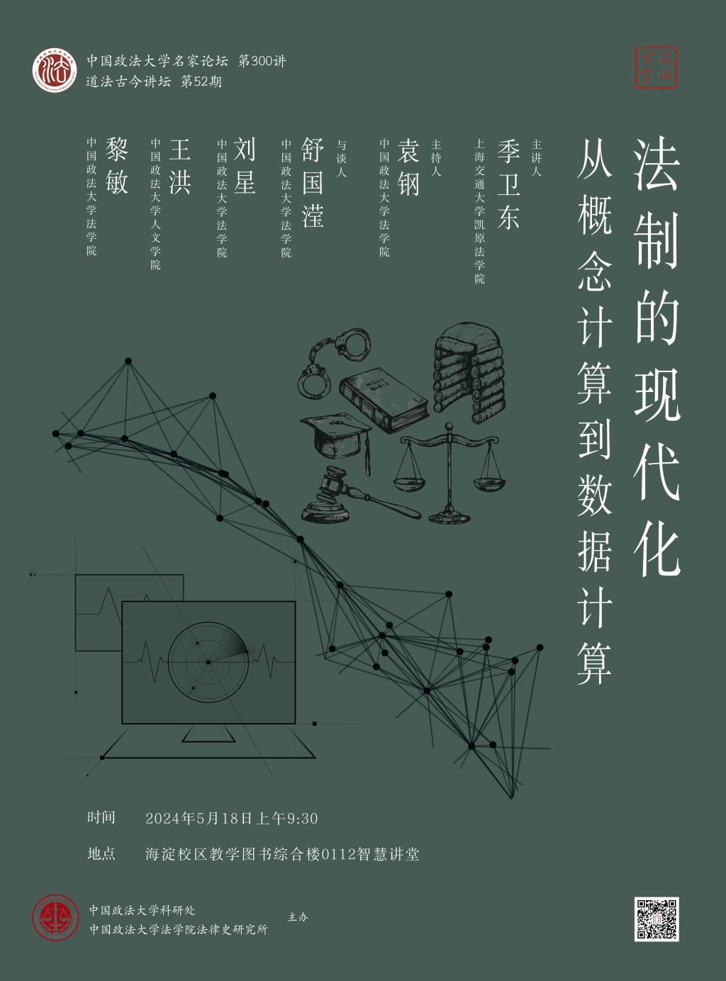 季卫东,上海交通大学文科资深教授兼校务委员会委员、中国法与社会研究院院长、人工智能治理与法律研究中心主任。兼任上海市法学会法社会学研究会会长、国际学术期刊Asian Journal of Law and Society 创刊人兼主编、中国计算机协会(CCF)计算法学分会会长、上海国家新一代人工智能发展创新试验区专家咨询委员会顾问、中国数字经济50人论坛成员、中华司法研究会常务理事、亚洲科技促进可持续发展联盟副主席。曾经被遴选为社会学国际协会法社会学研究委员会(RCSL)指定理事、日本法社会学会理事、亚洲太平洋论坛(淡路会议)研究委员会委员、东京财团比较制度研究所研究员、国际高等研究所企画委员、达沃斯世界经济论坛司法全球议程理事会理事、中国教育部法学教育指导委员会副主任、上海市法治研究会会长。在2008-2018年期间担任过上海交通大学BSport体育官网院长,在1996-2008年期间为日本神户大学BSport体育官网教授,此前还曾经到斯坦福大学BSport体育官网做访问学者。主要中文著作有《法治秩序的建构》(商务印书馆)、《宪政新论》(北京大学出版社)、《法律程序的意义》(中国法制出版社)、《大变局下的中国法治》(北京大学出版社)、《通往法治的道路——社会的多元化与权威体系》(法律出版社)、《中国的司法改革》(编著,法律出版社)、《AI时代的法制变迁》(编著,三联出版社)、《法的跨界——规范、事实以及学科的交叉》(法律出版社)、《法社会学》(编著,高等教育出版社)等。